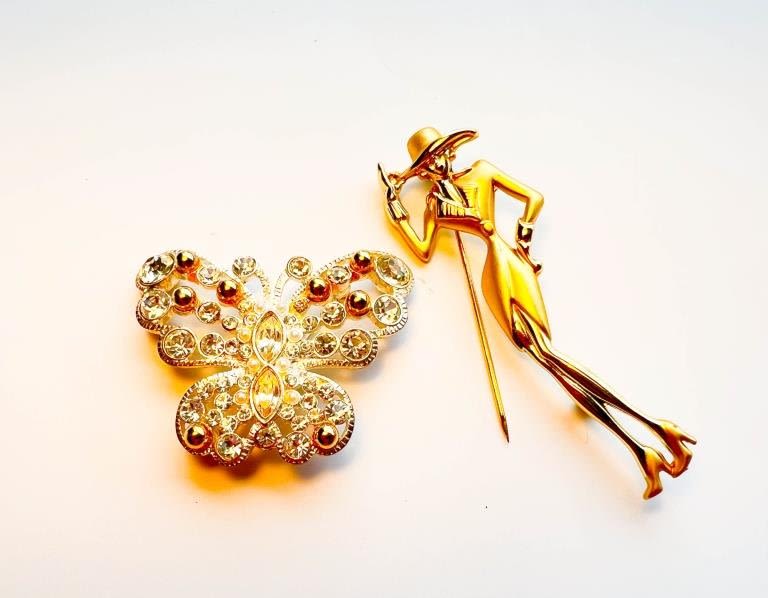 JC SIGNED SILVERTONE LADY + C SIGNED BUTTERFLY