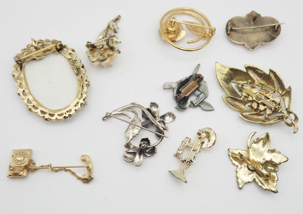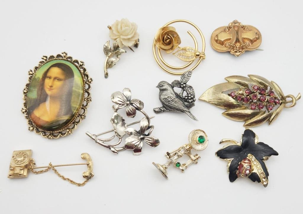 BROOCH ASSORTMENT LOOK !!!, CAMEO, FLORAL, LEAVES MORE