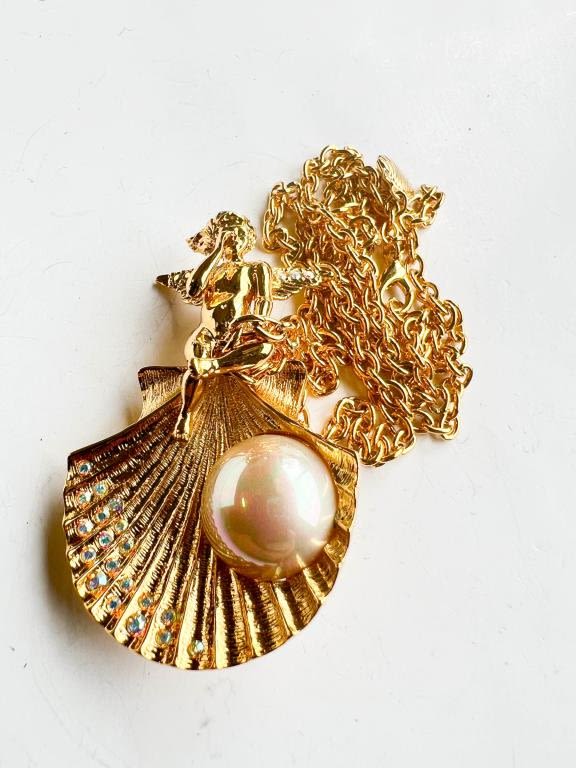 AMAZING PENDANT BROOCH NECKLACE W FAUX PEARL