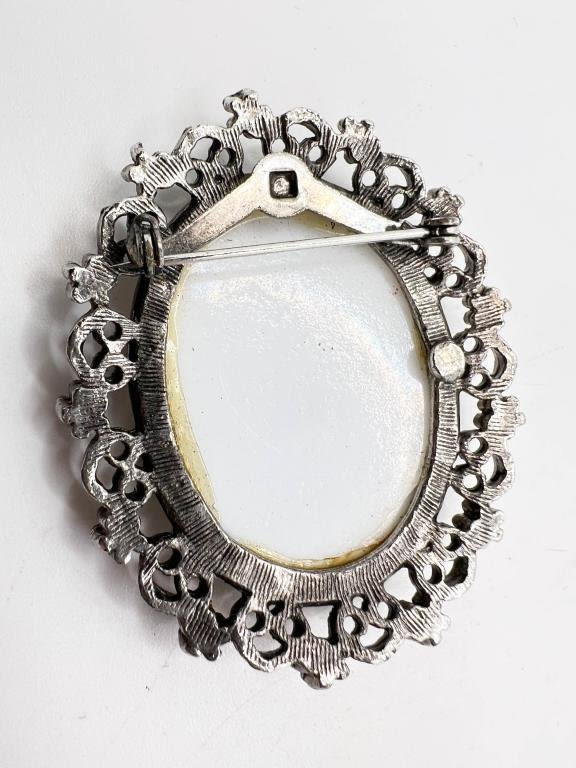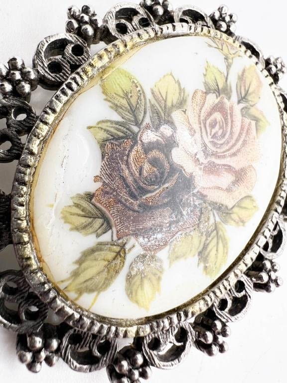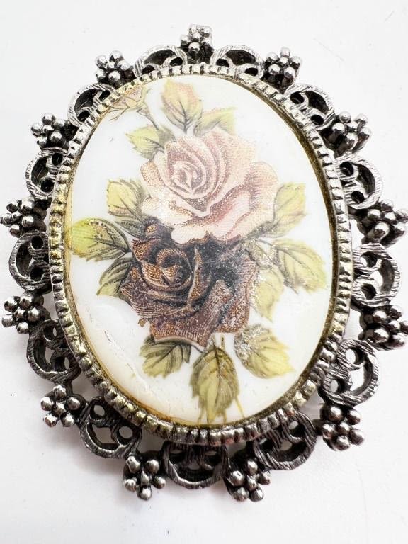 LARGE VINTAGE CAMEO FLORALS, PINKS AND PURPLES, HEAVY , PRETTY