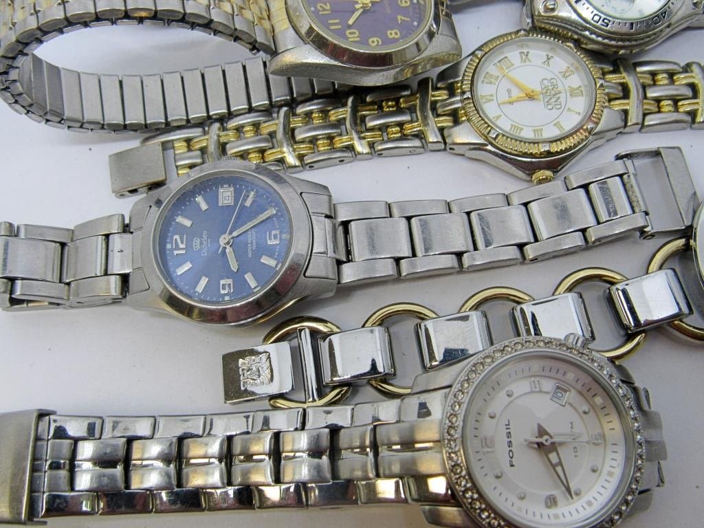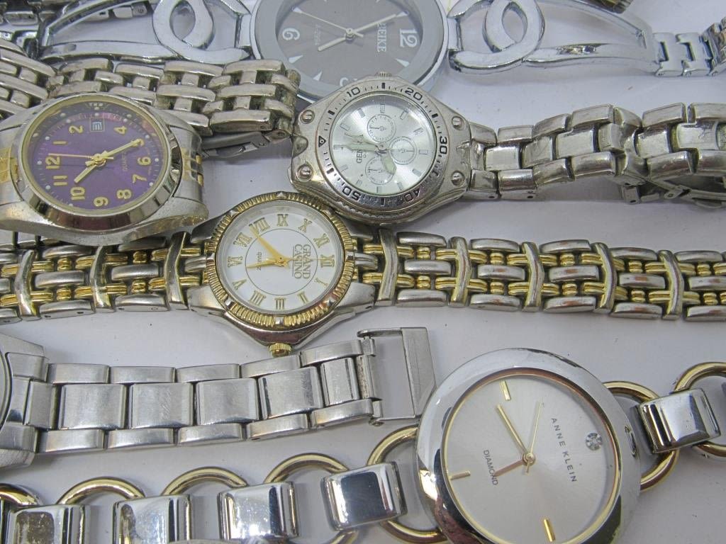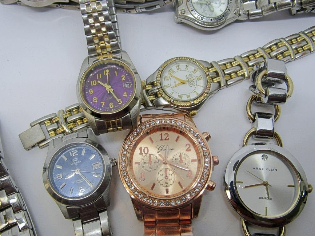 Multi Brand watch lot! Includes Fossil, Anne Klein, Geneva, Richelieu, Vellaccio and more. All untested. Gold, silver, and rose gold toned, and some have rhinestones on the case. Appear to be in good condition.