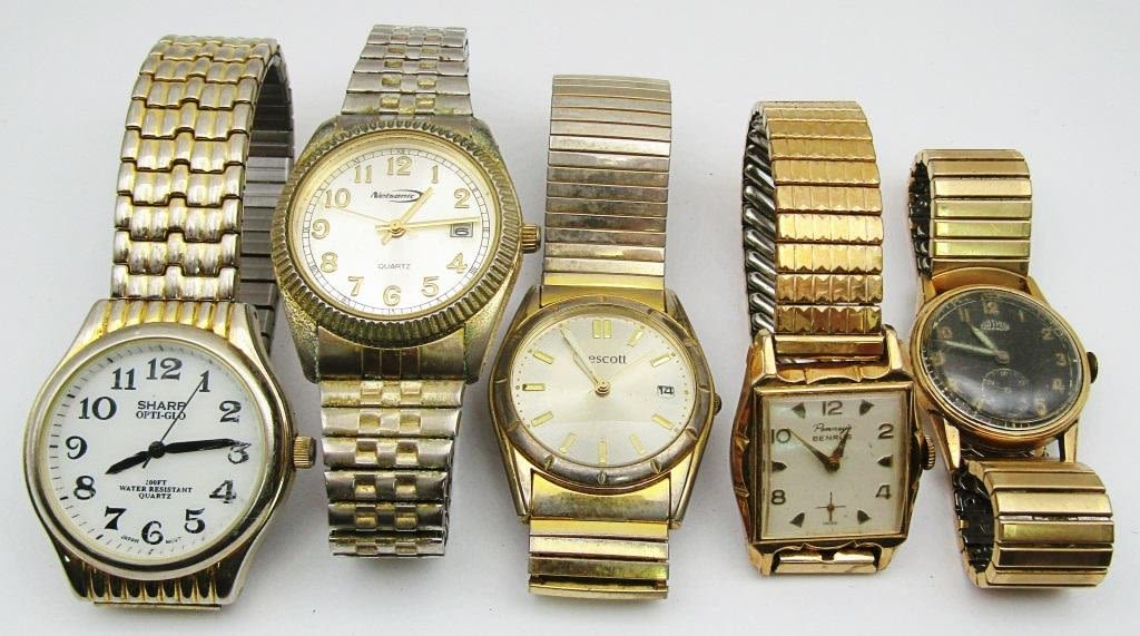 PRESCOTT CALENDAR-GOTHIG JAR PROOF-SHARP OPTI-GLO 100FT WR-PENNYS BENRUS-NELSONIC CALENDAR-ALL WATCHES UNTESTED