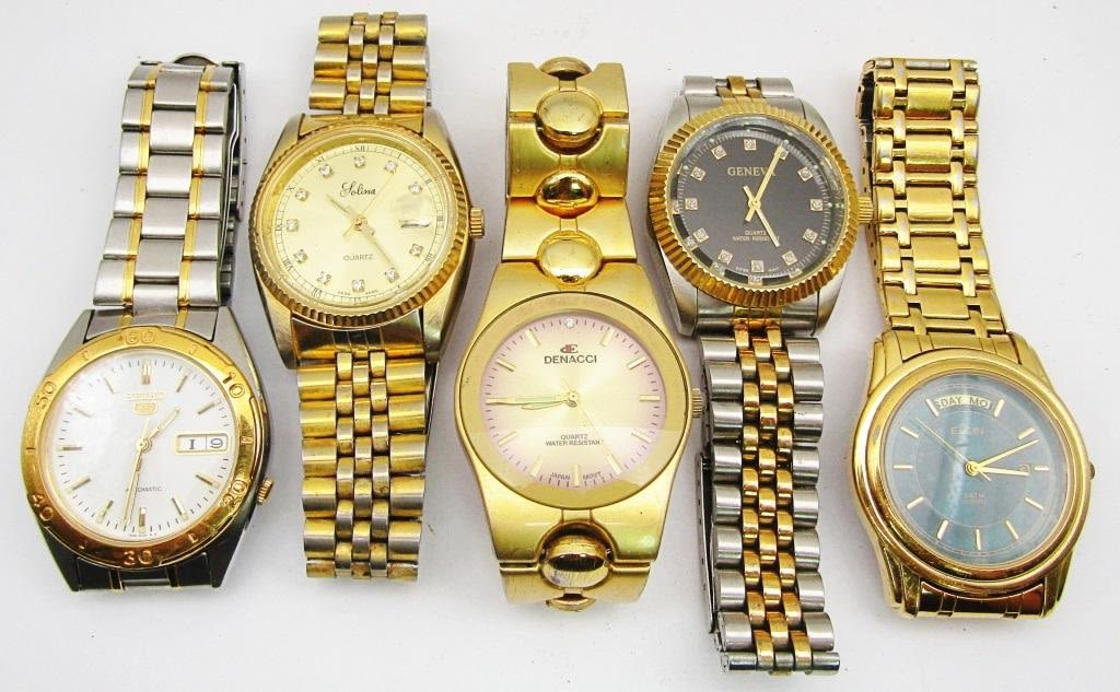 WR-SEIKO AUTOMATIC CALENDAR-GENEVA QUARTZ WR-SOLINA QUARTZ CALENDAR-ELGIN 3 ATM QUARTZ DAY DATE-ALL WATCHES UNTESTED