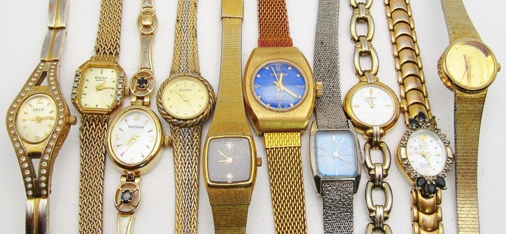 ASEIKON 23 JEWEL (RUNNING)-BULOVA-SEIKO #674858-RELIC-WITTNAUER-BULOVA-TIMEX-JULES JURGENSEN #7653-WALTHAM-SEIKO #610196-ALL WATCHES UNTESTED/PARTS/REPAIR