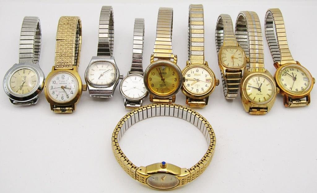 STRETCHY BANDS: BENRUS-TIMEX WR-ARMITRON WR-CARAVELLE-SEIKO #227445-TIMEX ELECTRA-SEIKO CALENDAR #5N0289-ADVANCE QUARTZ CALENDAR-TIMEX CALEDNAR-TIMEX QUARTZ-ALL WATCHES UNTESTED/PARTS/REPAIR
