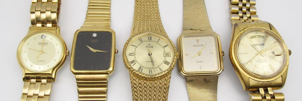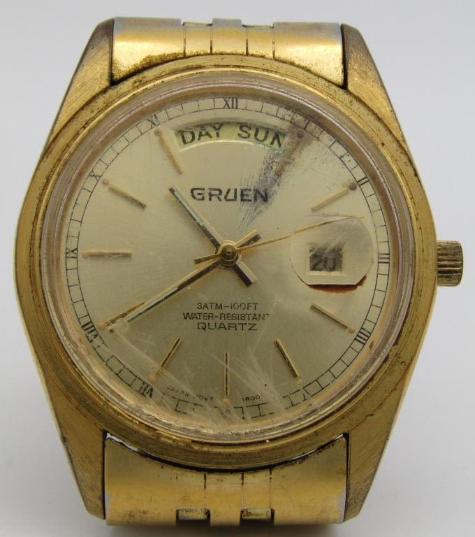 GRUEN-ELGIN CALENDAR-BULOVA-GRUEN 3ATM-100 FT WR DAY DATE-PULSAR QUARTZ-ALL WATCHES UNTESTED