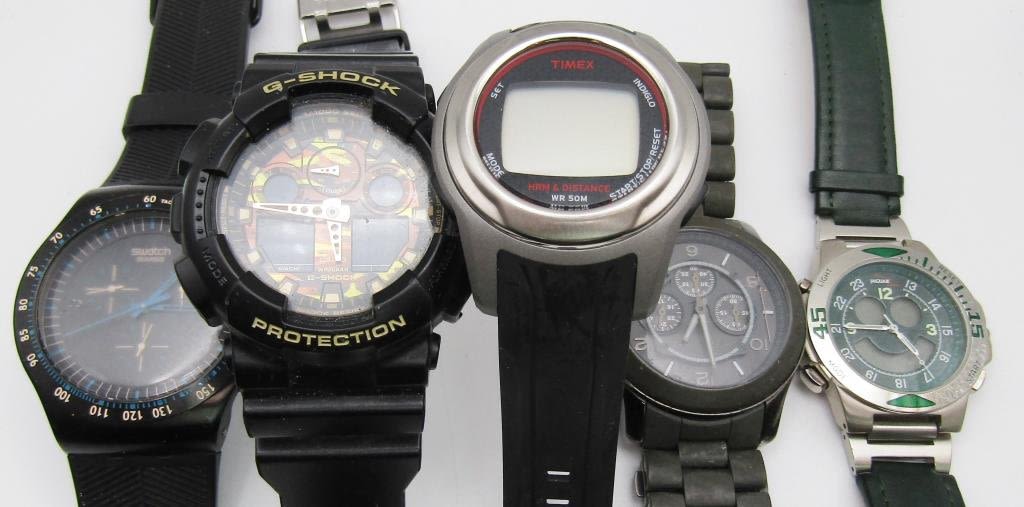 CHRONOGRAPH-SWATCH-CASIO G SHOOK-TIMEX HRM & DISTANCE WR 50M-JAGUAR DIGITAL-ALL WATCHES UNTESTED/PARTS/REPAIR