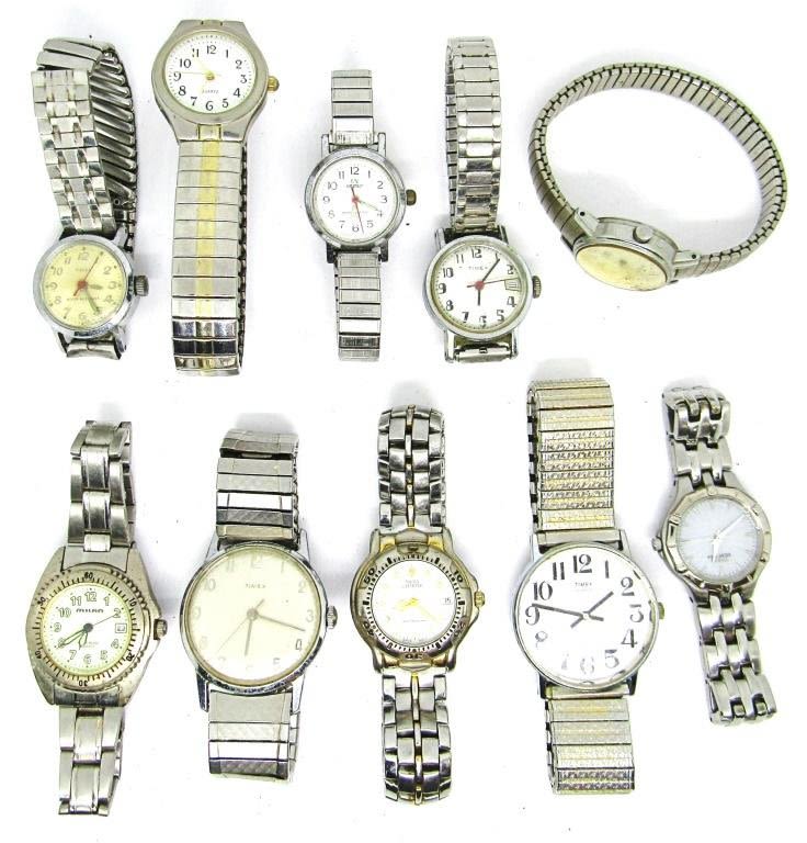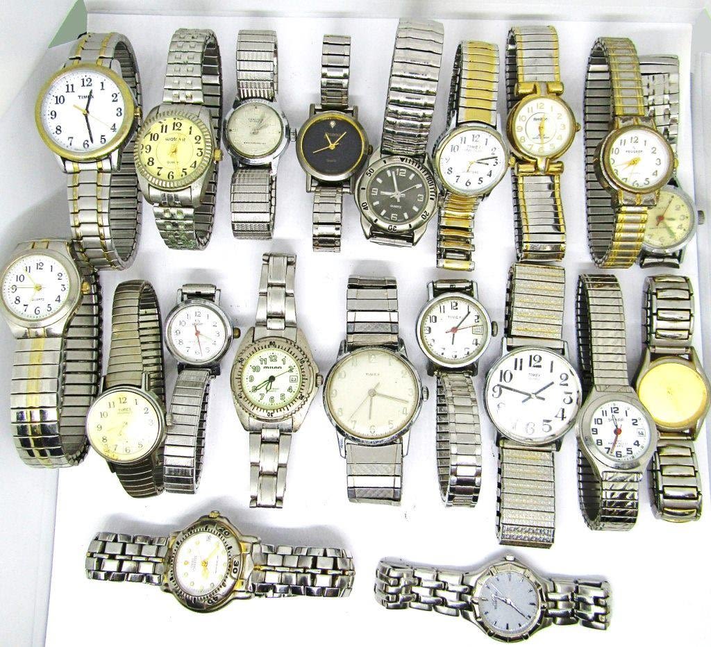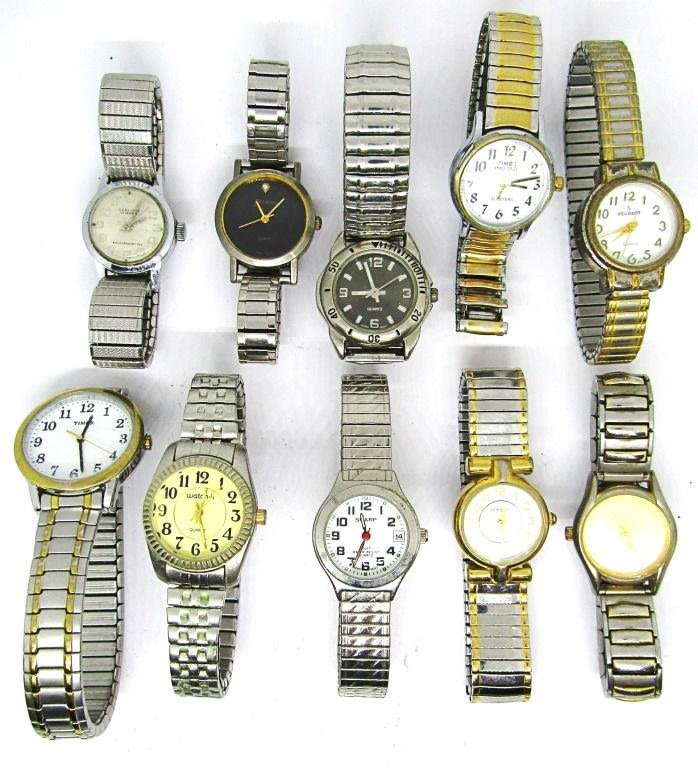 GREAT MIX of MOSTLY STRETCH BAND WRIST WATCHES – VARIOUS BRANDS – BOTH WIND UP & QUARTZ – UNTESTED