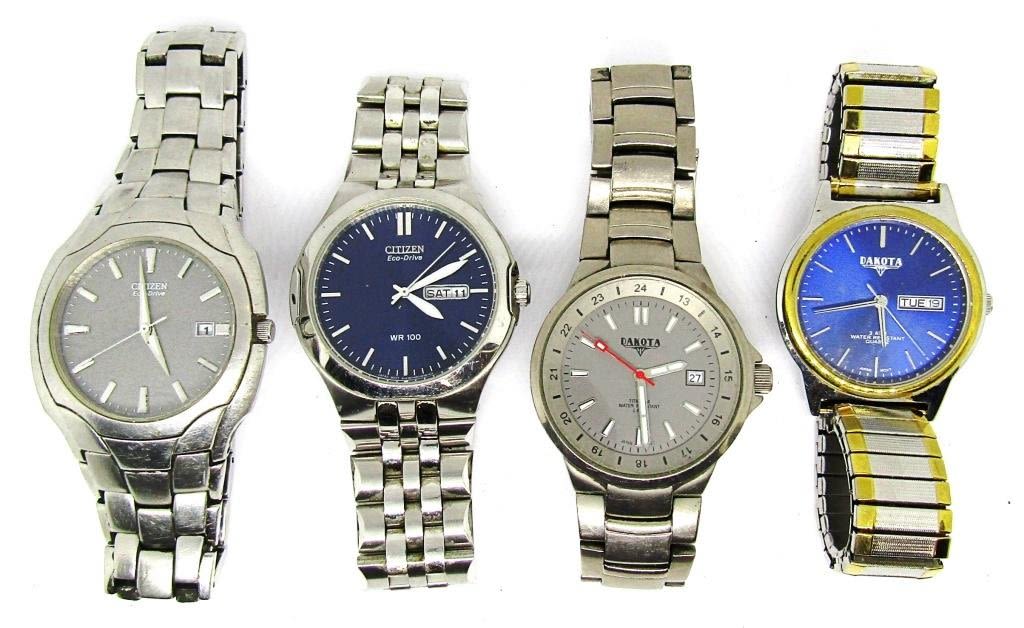 WORKING CONDITION plus (2) DAKOTA QUARTZ DAY / DATE WATCHES UNTESTED