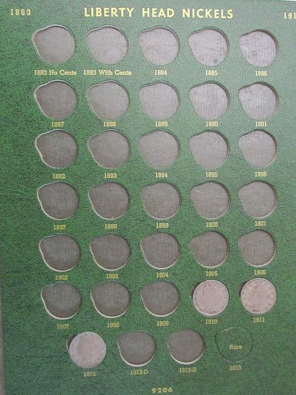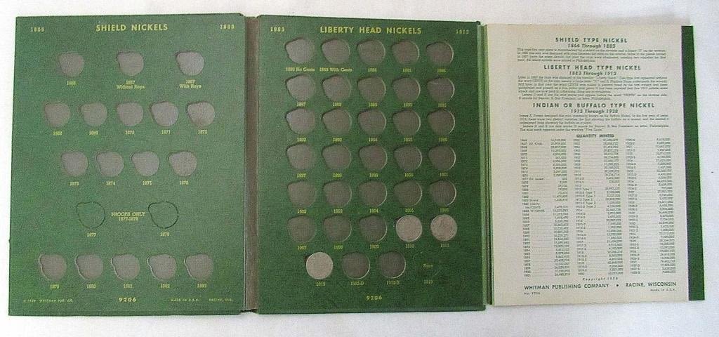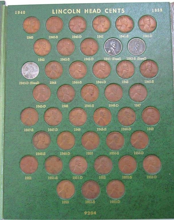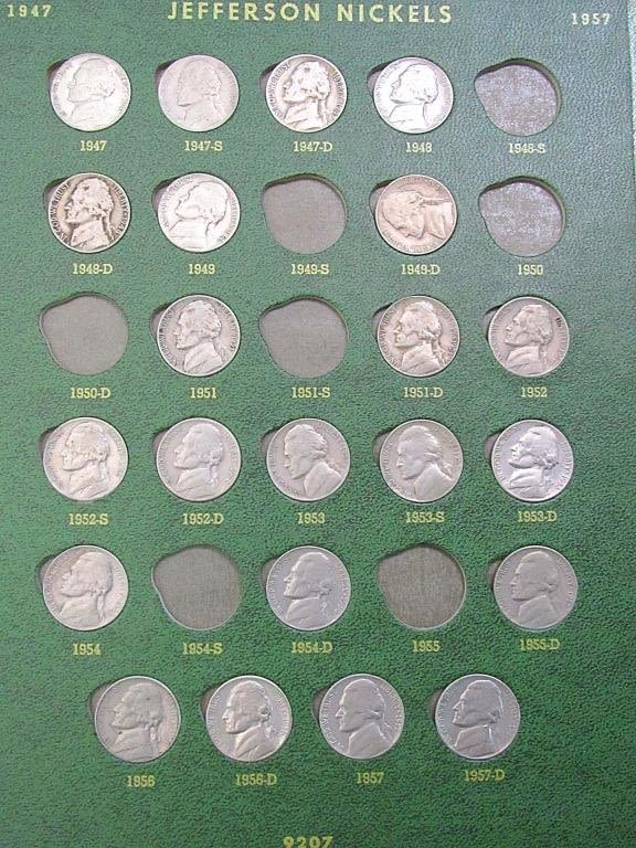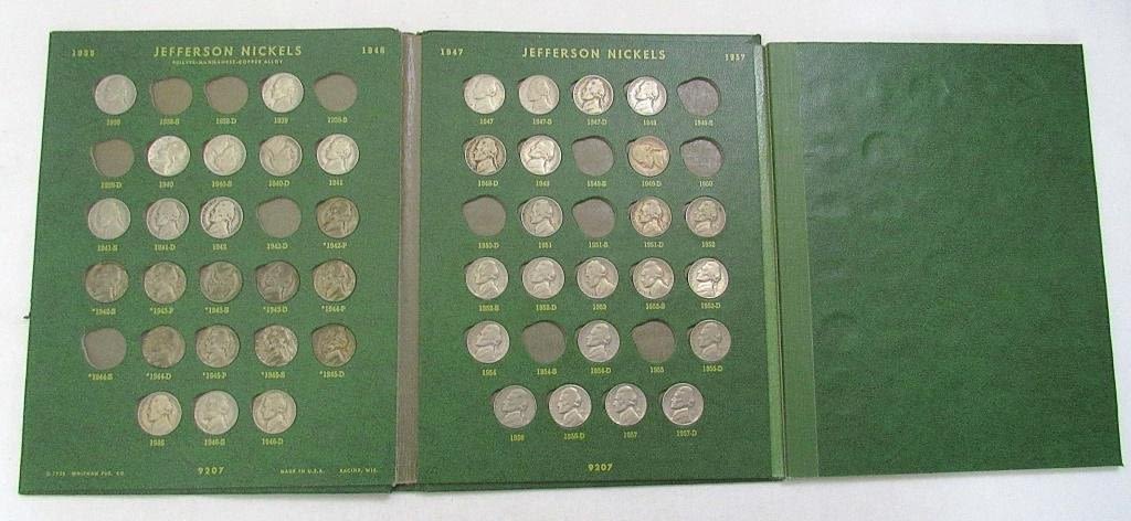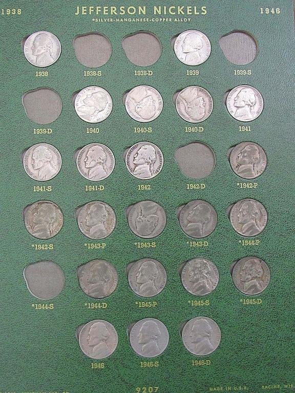LINCOLN CENT 1909 – 1963 with (86) WHEATS & (10) LINCOLN; NICKEL ALBUM with (3) LIBERTY "V" NICKELS & (4) BUFFALO NICKELS; JEFFERSON NICKEL ALBUM 1938-1962 with (10) SILVER WAR NICKELS (44) JEFFERSON