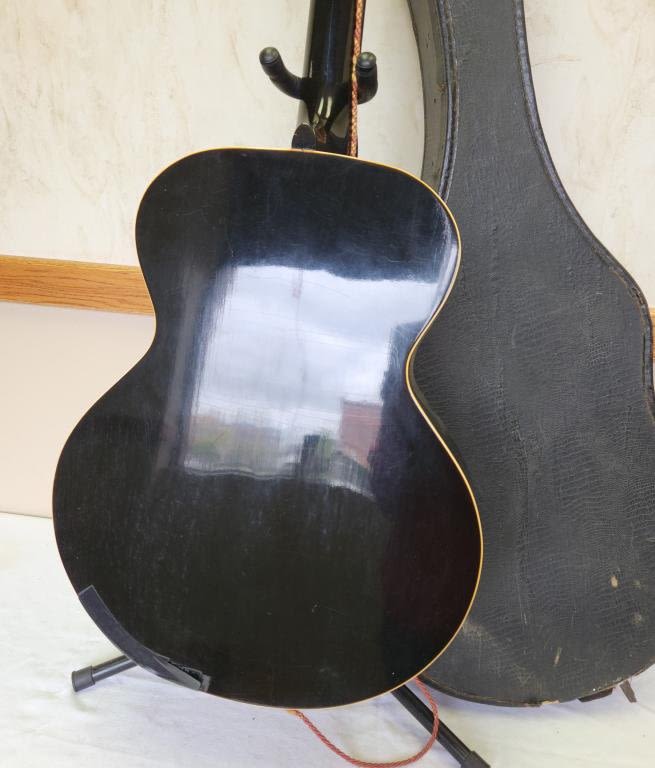 Gibson Archtop – Rare Black Special Pre War Era. Condition is “Used” The guitar is structurally sound. Neck is straight and the action is very respectable, binding is the only thing that has separated from the body.