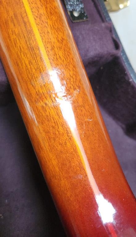CHERRY SUNBURST – All factory original guitar without any alterations here folks . We do need to mention that on the back of the neck there is an area where the clear finish is flawed due to it resting against possibly