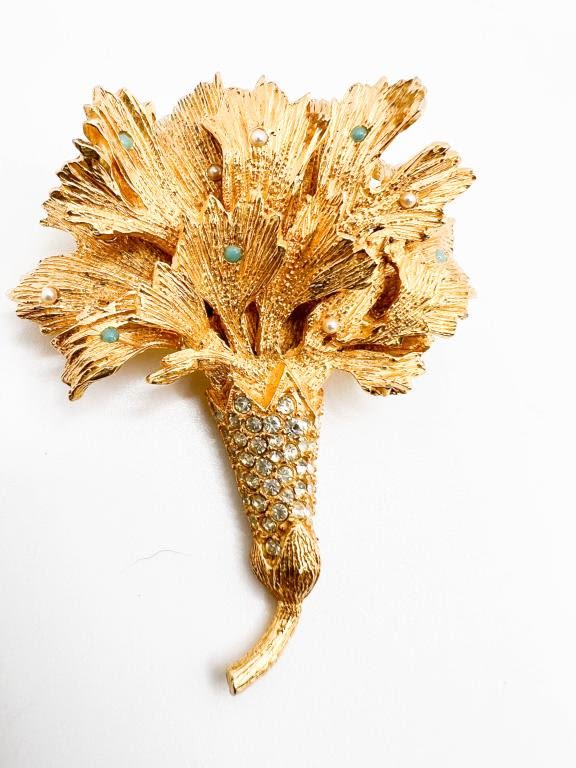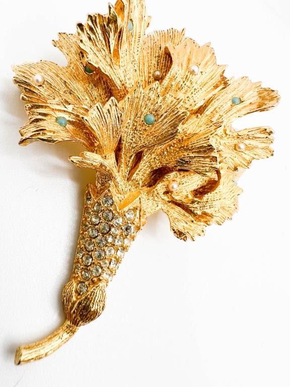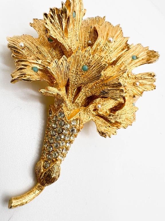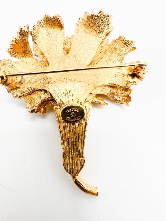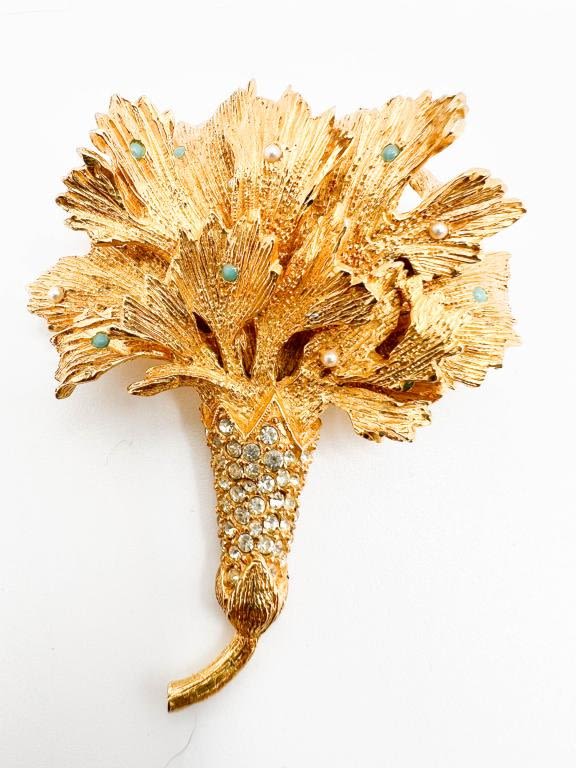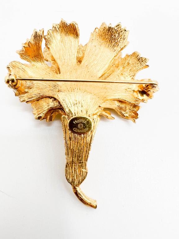 HATTIE CARNEGIE FLORAL BLOSSOM BROOCH , SIGNED, W INLAID DELICATE MULTI COLOR STONES
