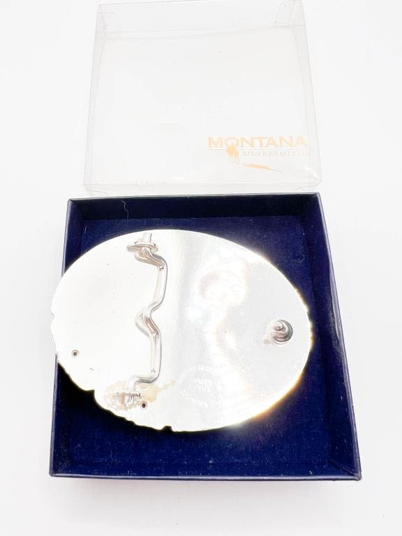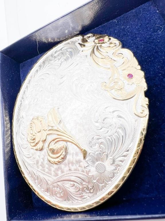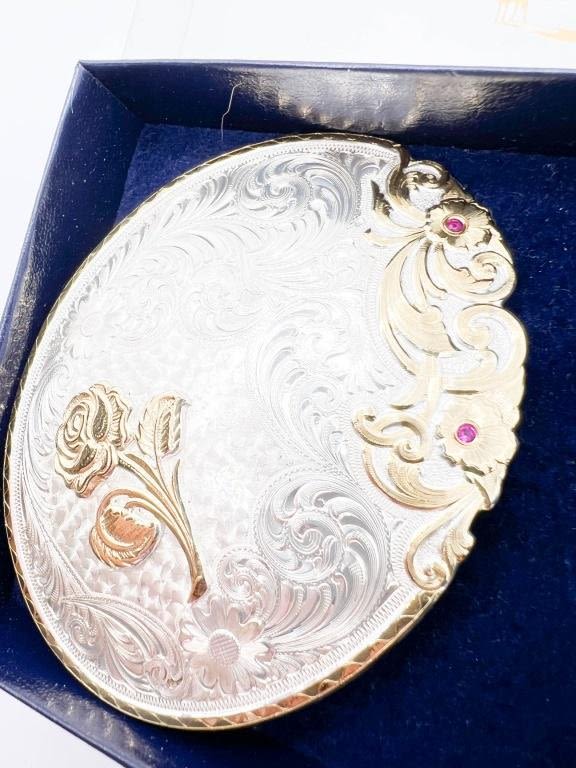 MONTANA SILVER SMITHS ROSE AND FLORAL SILVER PLATE BUCKLE WITH SMALL STONES