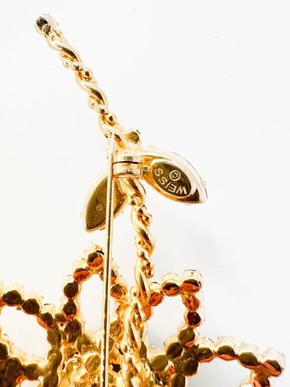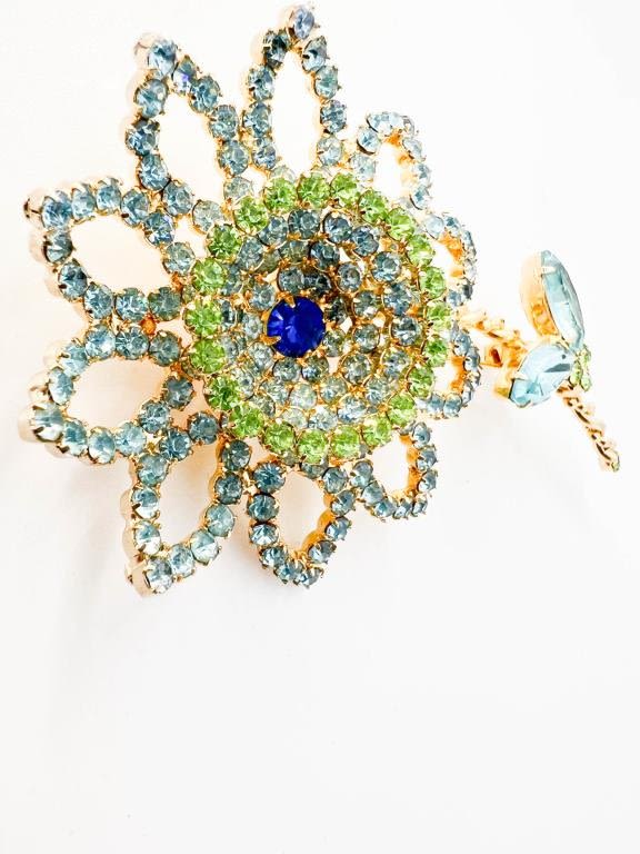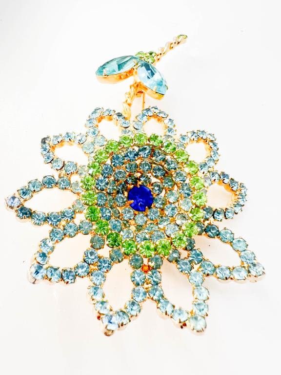 STUNNER VINTAGE WEISS ! FLORAL BROOCH W MULTICOLOR STONES, AND STONE LEAVES, SIGNED WEISS, VINTAGE PIECE
