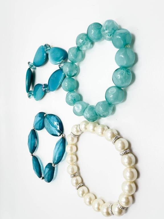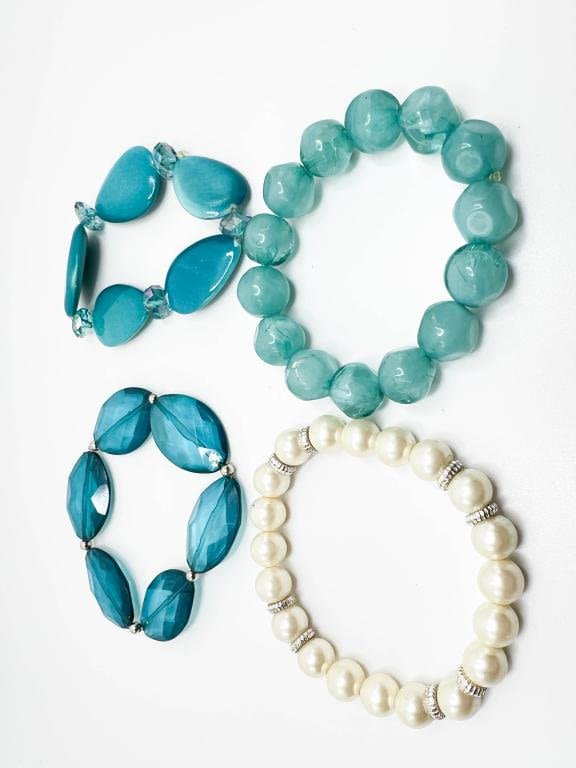 FOUR STONE BRACELETS, ONE WITH FAUX PEARLS