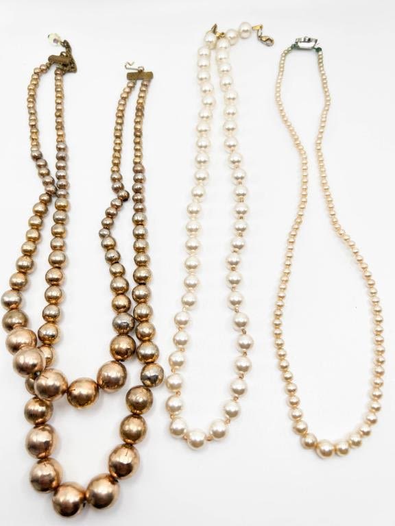 3 FAUX PEARL NECKLACES , 1 DOUBLE STRAND COLOR