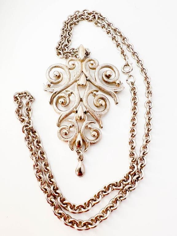 LARGE VINTAGE SCROLL PENDANT NECKLACE