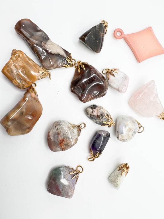 GORGEOUS POLISHED STONE PENDANTS , VARIETY COLORS, HUGE LOT