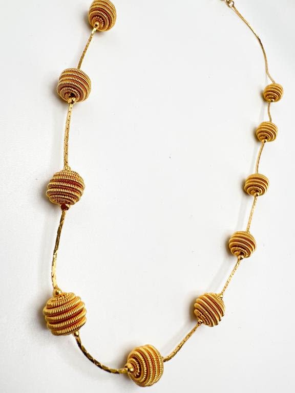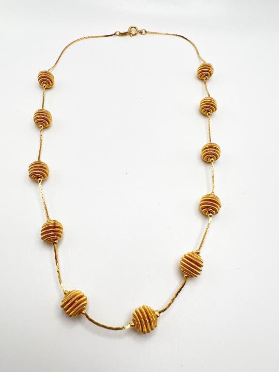 TRIFARI GOLD TONE BEAD NECKLACE , SIGNED TRIFARI