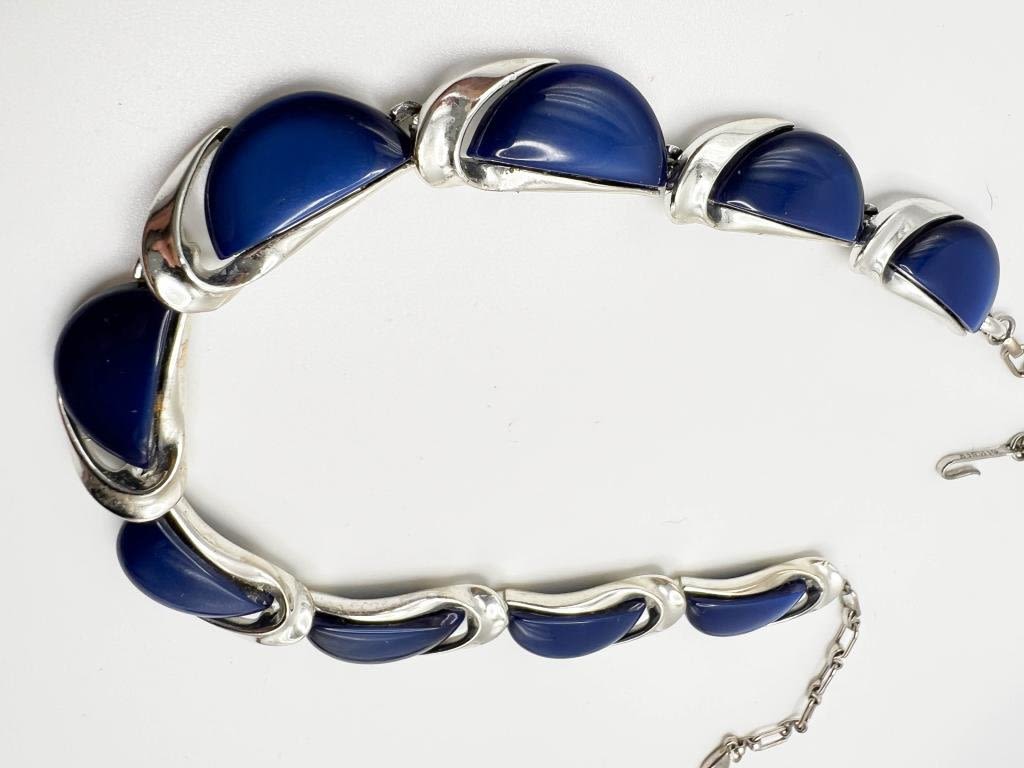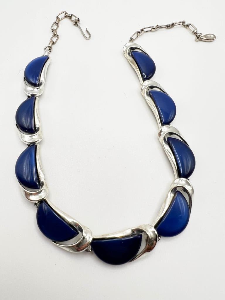 LISNER SIGNED BLUE NECKLACE ON SILVER TONE