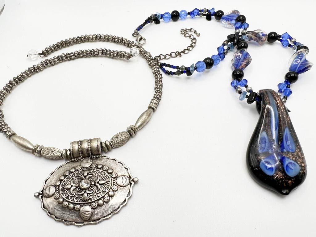 GLASS NECKLACE + LARGE PENDANT NECKLACE
