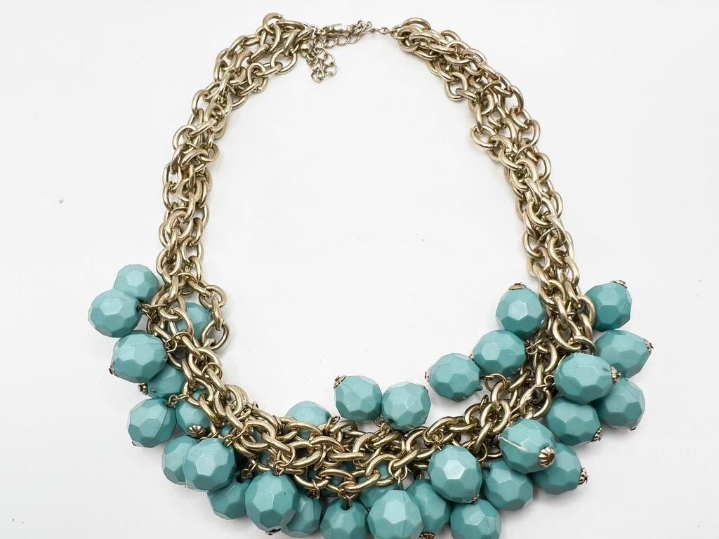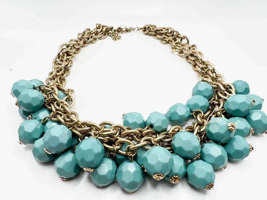 LARRGE VINTAGE BEADED TURQUISE COLOR NECKLACE