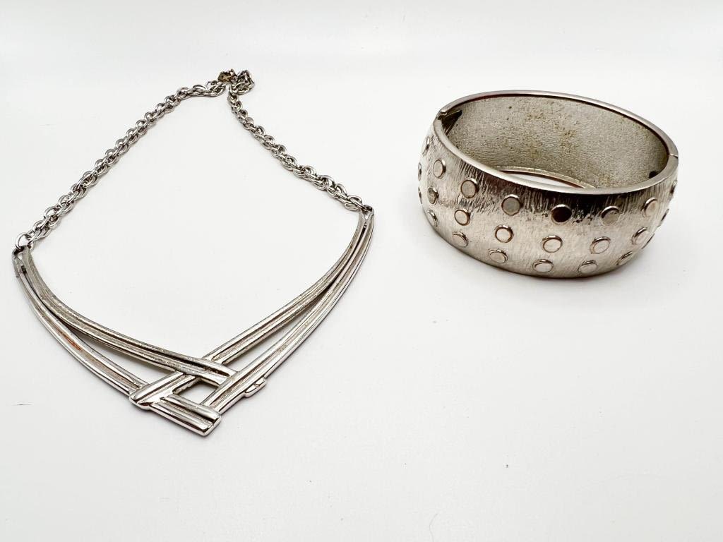 MONET SIGNED NECKLACE AND SILVER TONE CHUNKY BRACELET