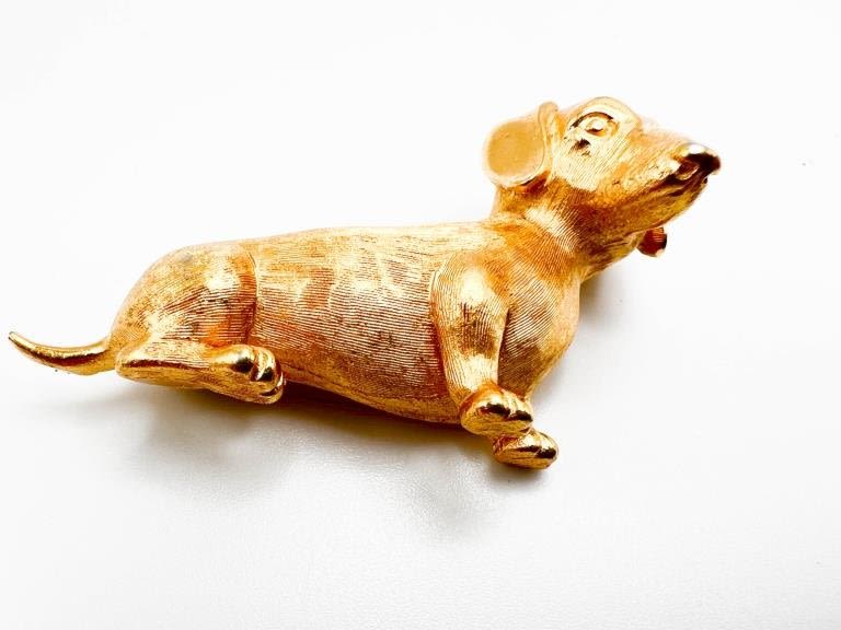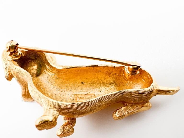 TRIFARI DASCHUND BROOCH , GOLD TONE, VINTAGE DASCHUND
