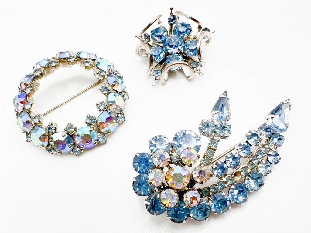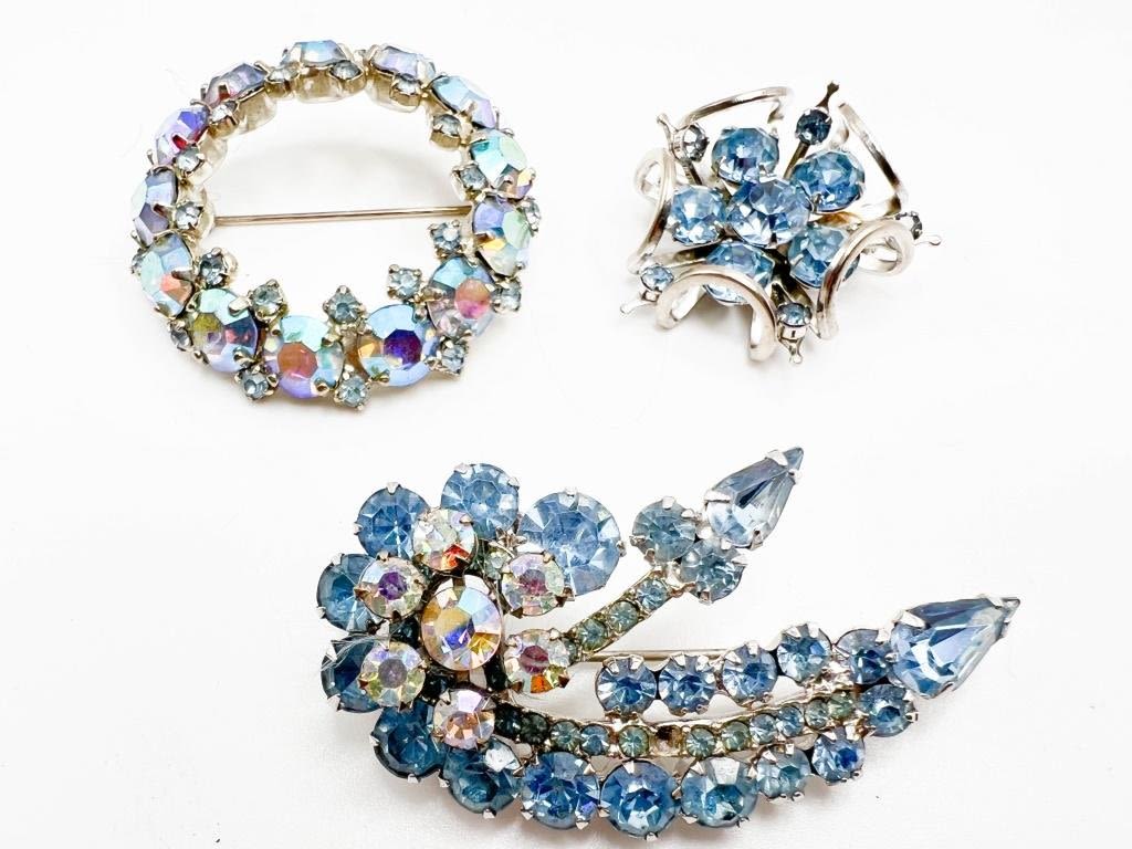 SKY BLUE RHINESTONES BROOCH TRIO