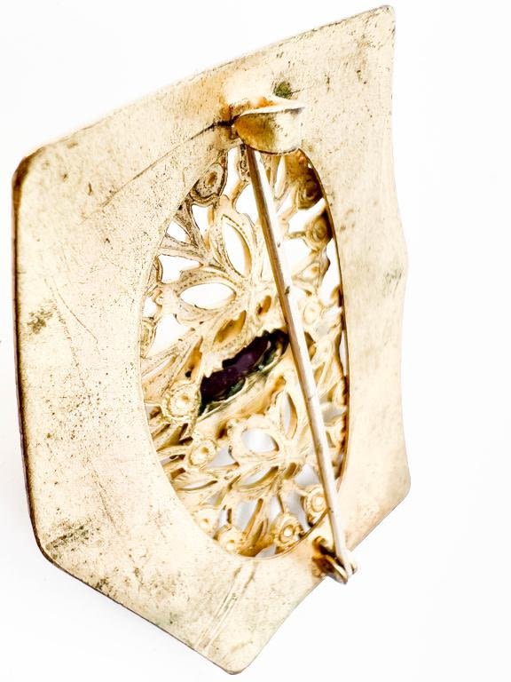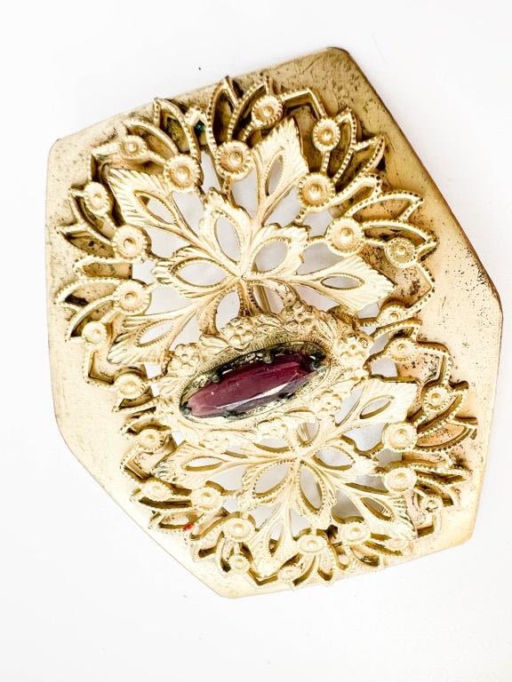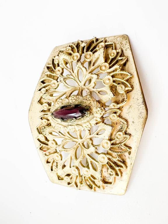 ANTIQUE? C CLASP INTRICATE BROOCH WITH AMETHYST COLOR STONE SETTING