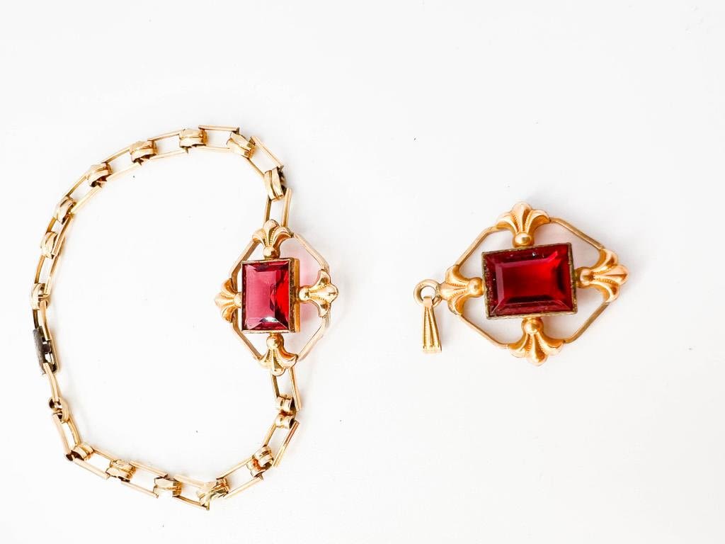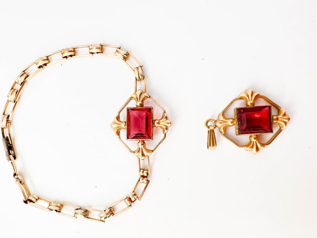 BRACELET PENDANT SET, RUBY RED , MATCHING SET