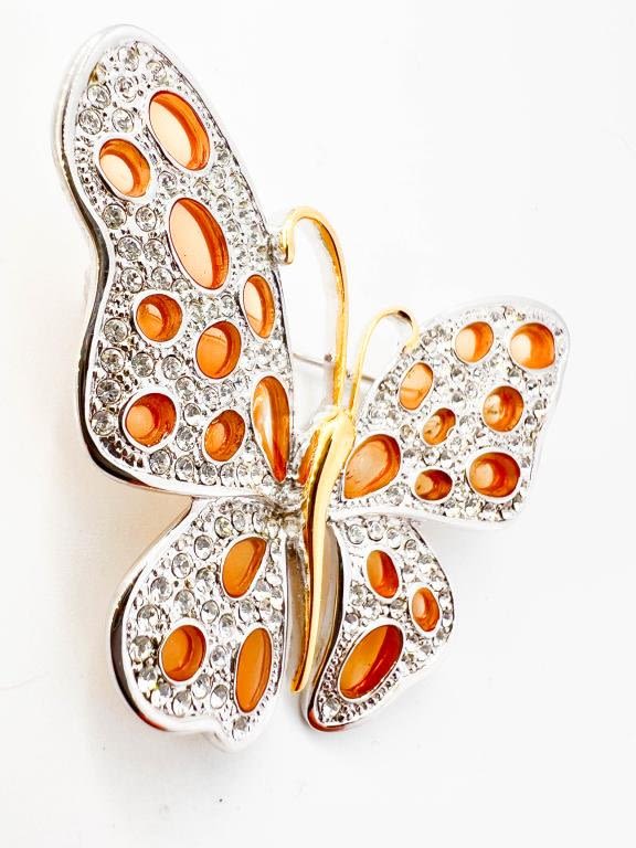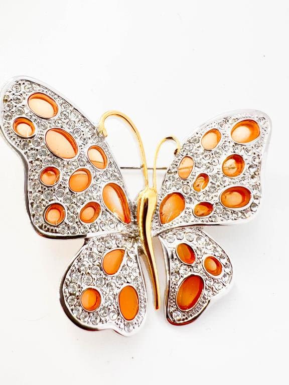 NOLAN MILLER SIGNED BUTTERFLY BROOCH SILVER AND GOLD TONE, STUNNING !
