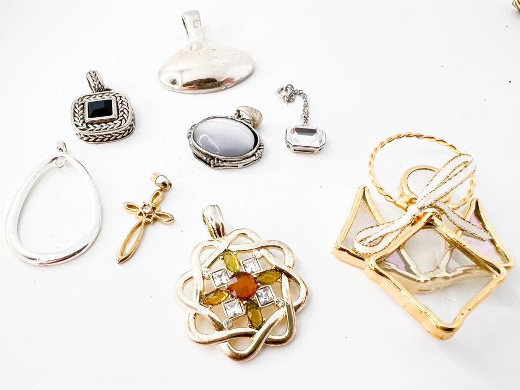 PENDANT ASSORTMENT , 8 TOTAL GOLD AND SILVER TONE