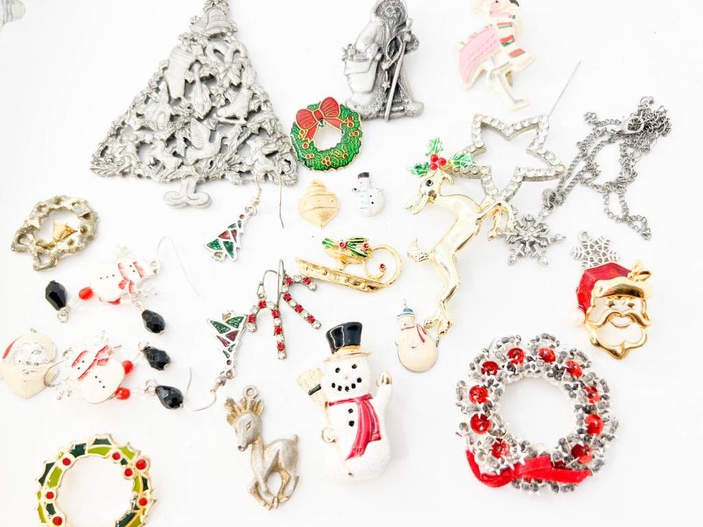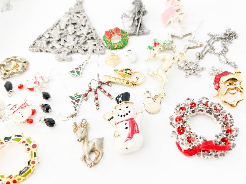 CHRISTMAS LOT, BROOCHES + SANTA SNOWMAN DEER TREE +