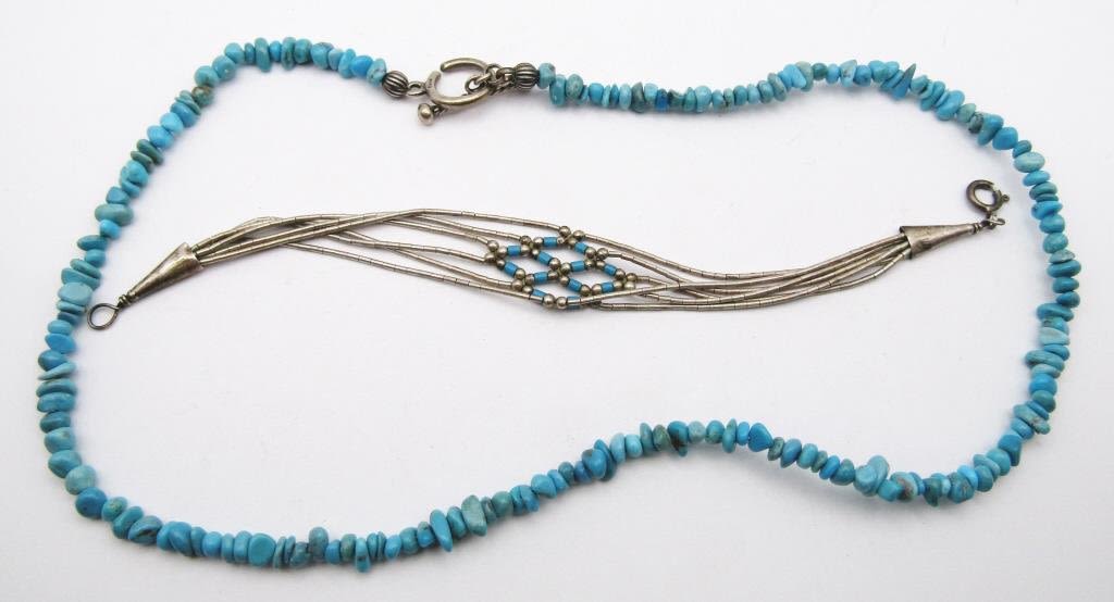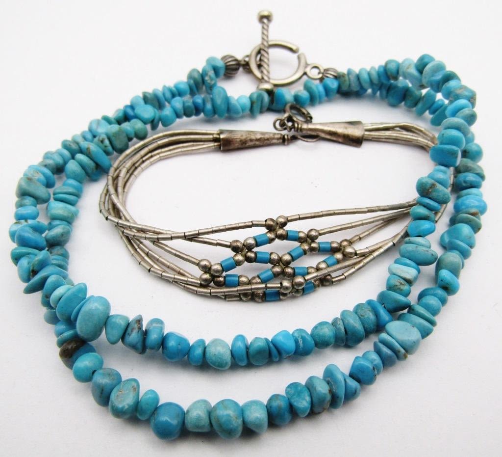 WITH TOGGLE 925 CLASP PLUS BONUS LIQUID STERLING MULTI STRANDED BRACELET WITH TURQUOISE BEAD ACCENTS-NECKLACE MEASURES 18 INCHES & BRACELET MEASURES 6.5 INCHES-TOTAL 13 DWT