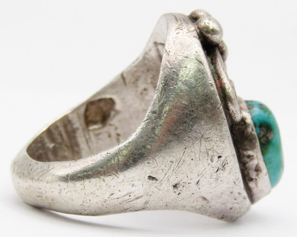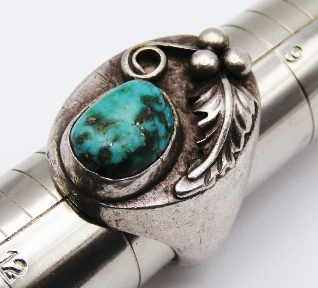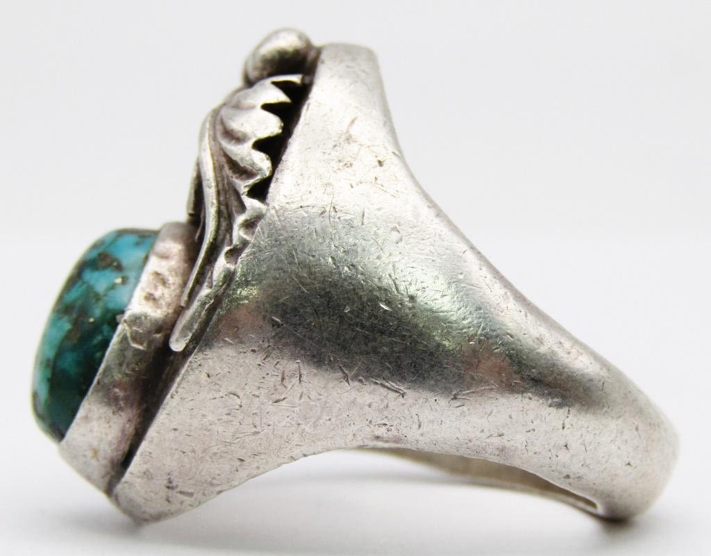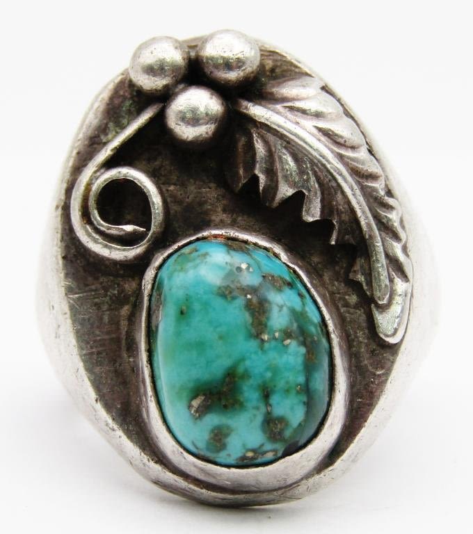 WITH TURQUOISE CENTER STONE-LEAF DESIGN-RING SIZE 10-TOTAL 22 DWT