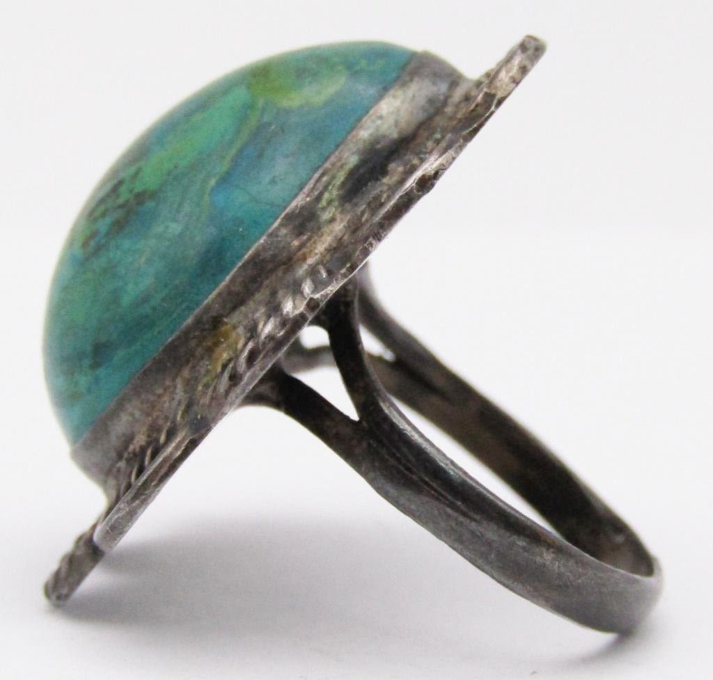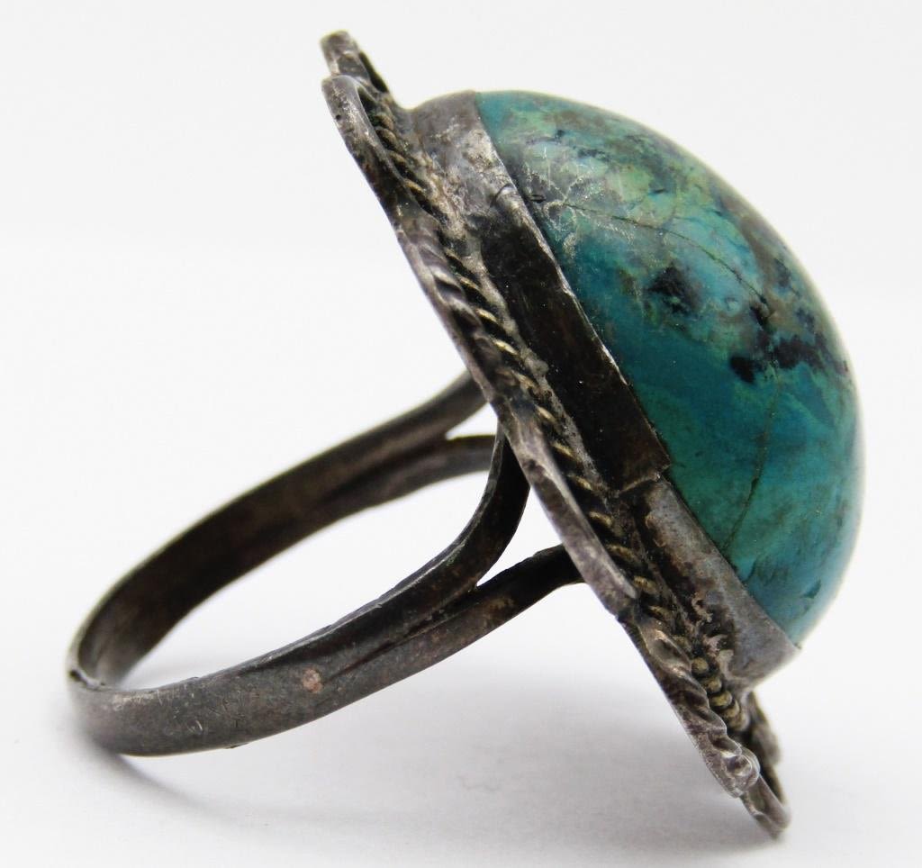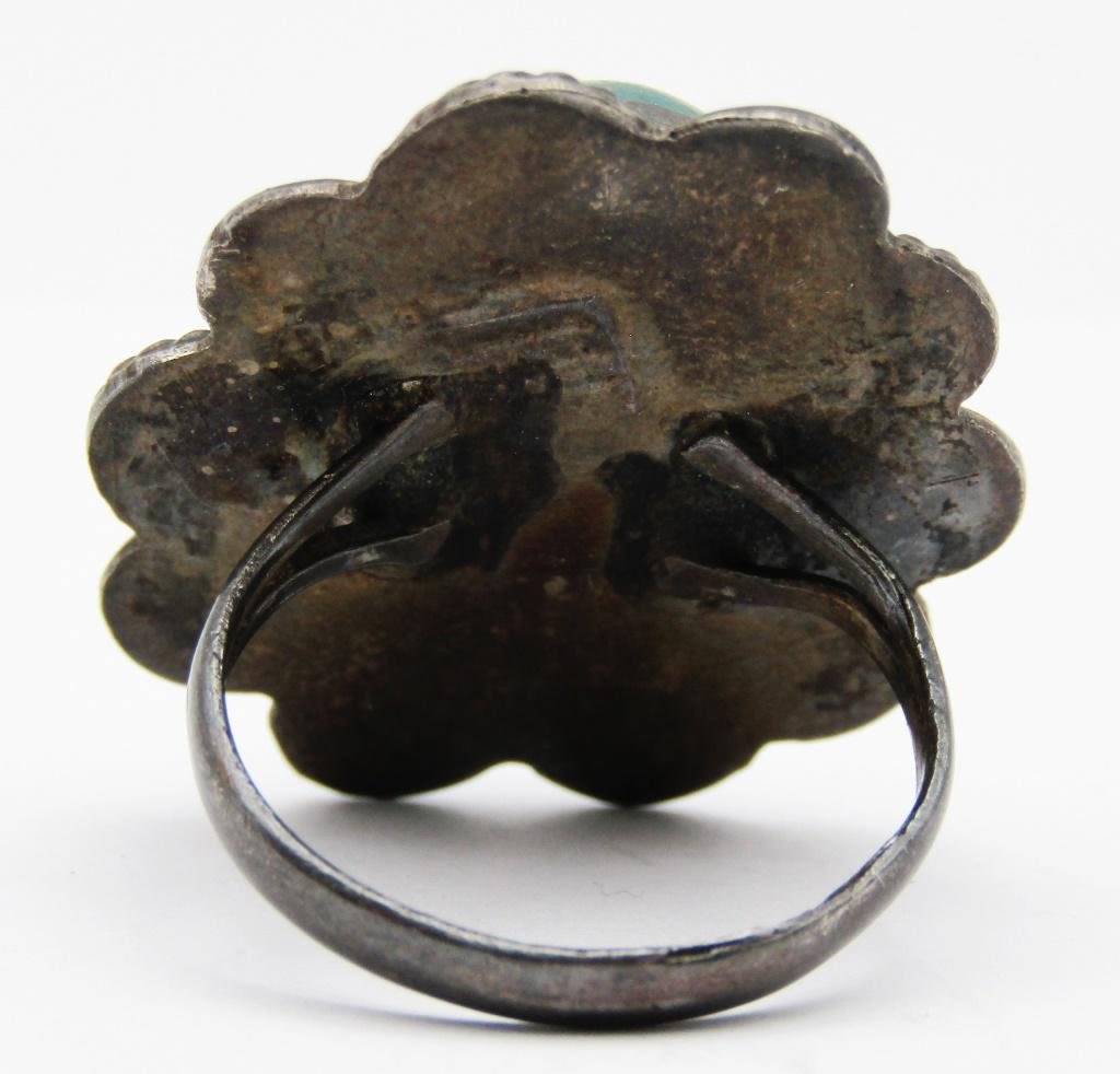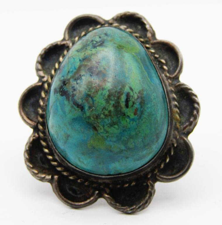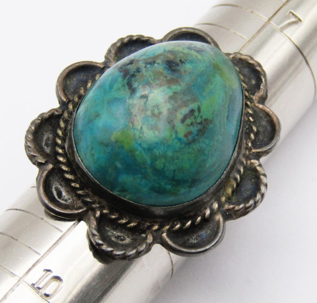 GREEN TURQUOISE CENTER STONE-FLOWER DESIGN-RING SIZE 8-TOTAL 7 DWT