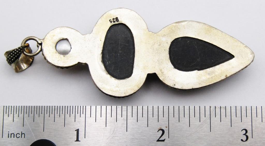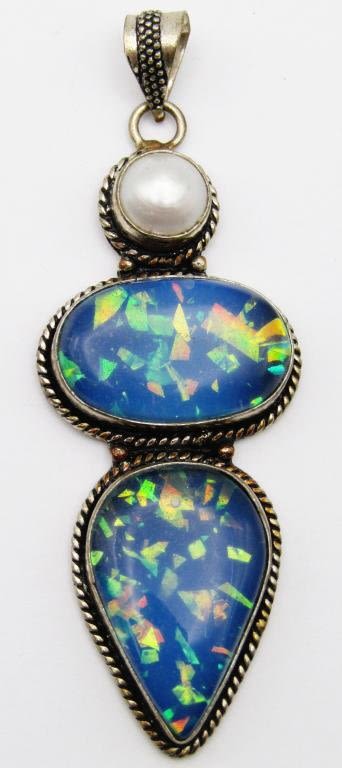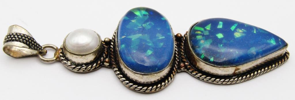 BLUE AND GREEN METALLIC STONES & PEARL ACCENT-MEASURES 3 INCHES LONG-TOTAL 13 DWT