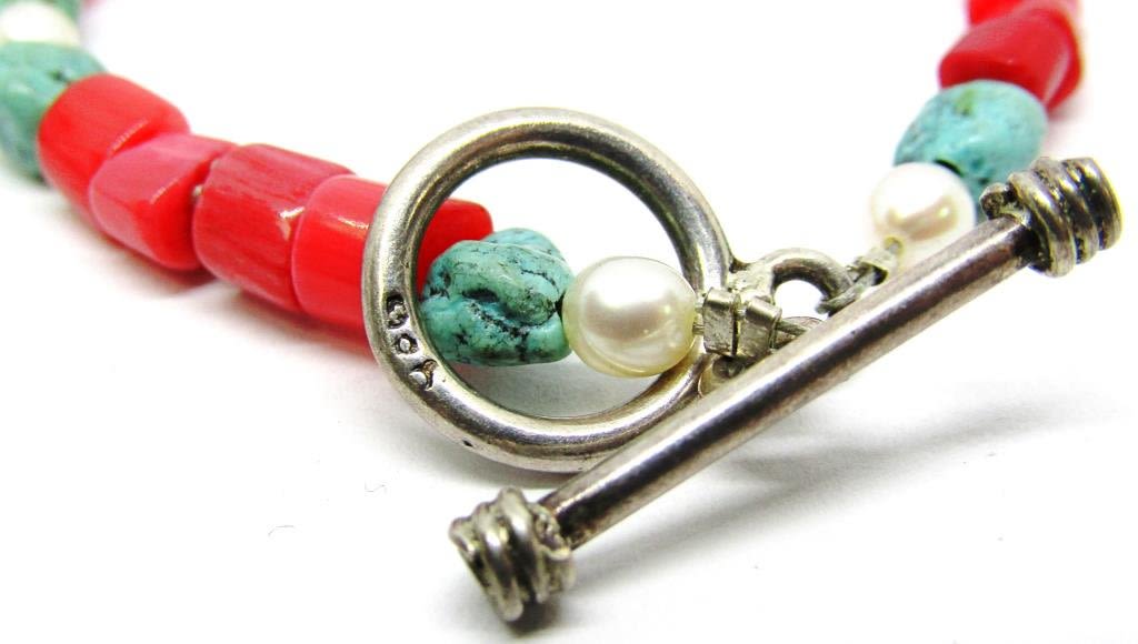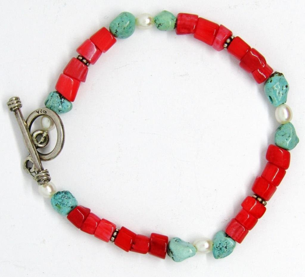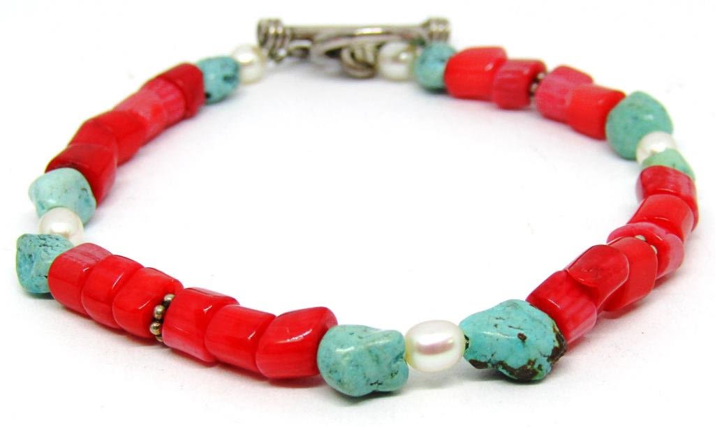 BEADED BRACELET WITH CULTURED PEARL ACCENTS-TOGGLE CLASP-MEASURES 8 INCHES-TOTAL 7 DWT