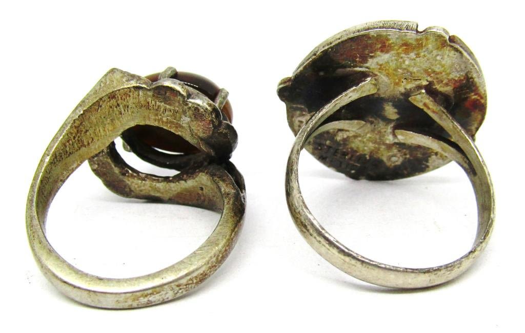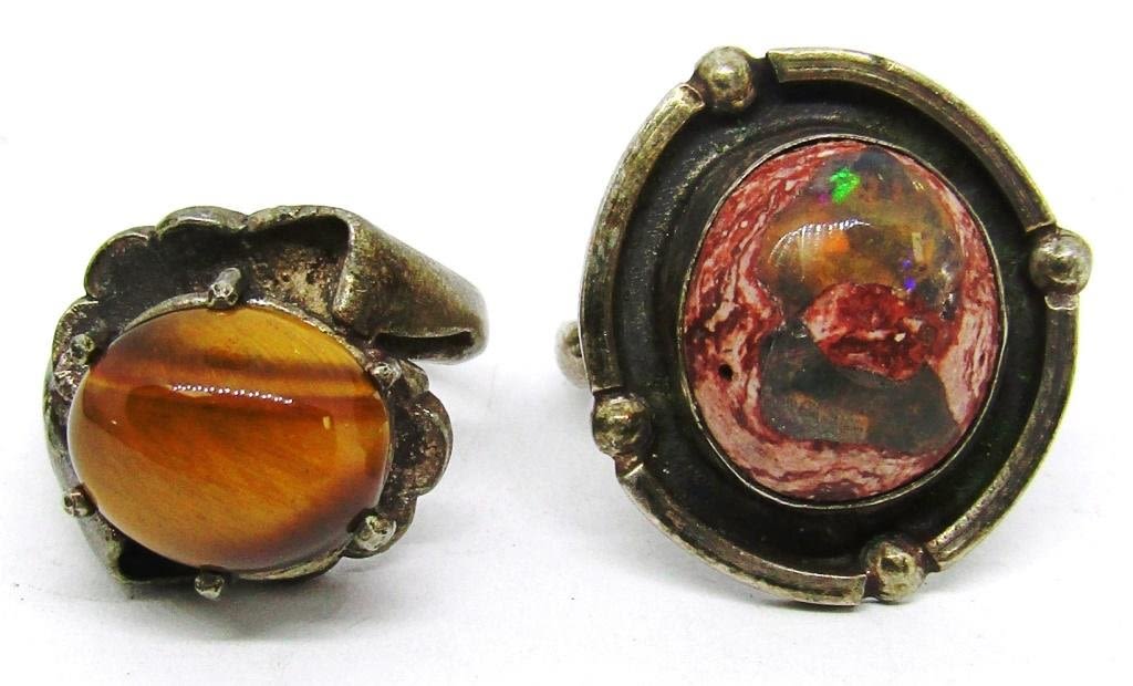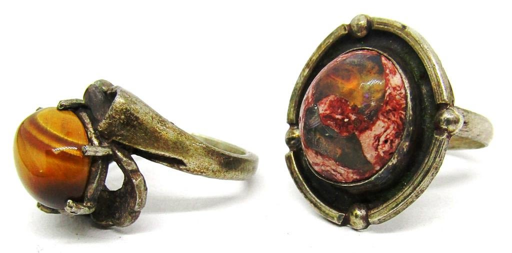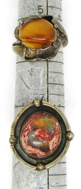 MEXICO WITH UNIQUE PINK STONE (1)TIGER EYE-RING SIZES 6 & 8-TOTAL 8 DWT