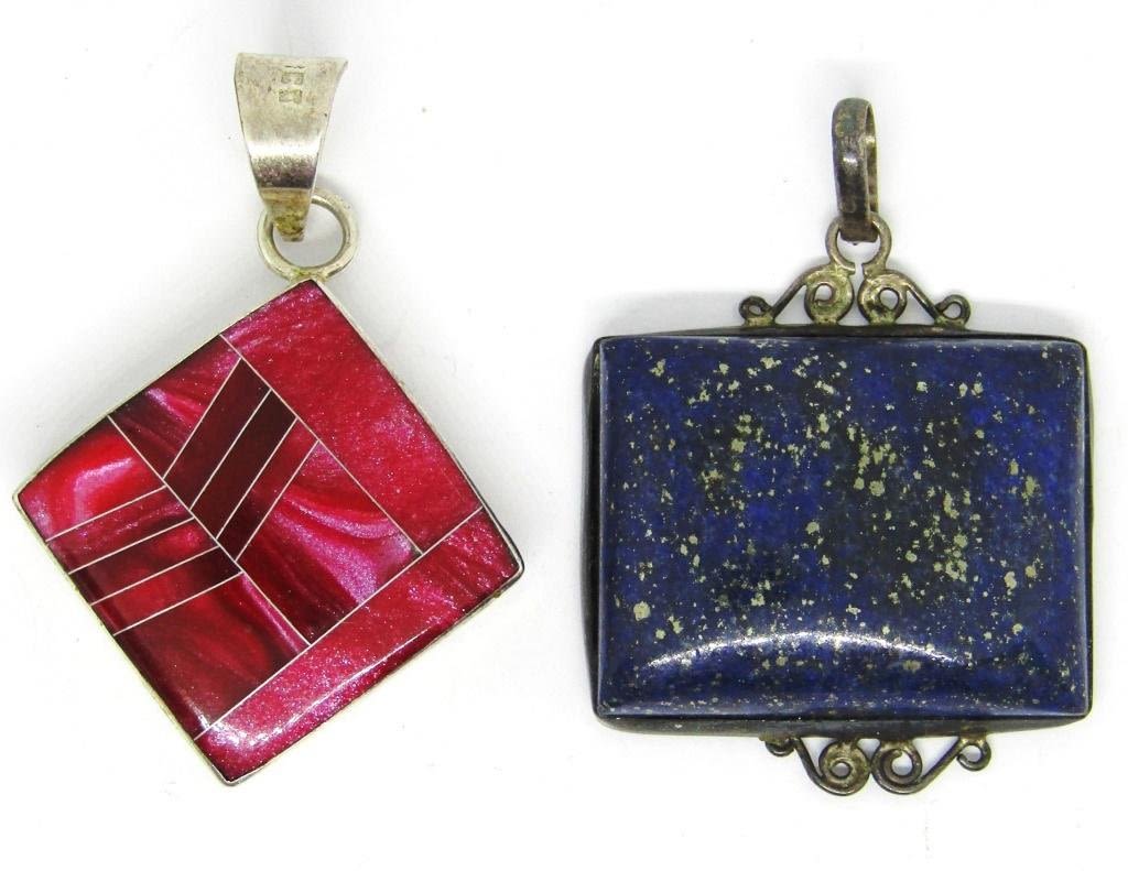 MEXICO WITH GORGEOUS PINK STONE INLAY & (1)WITH LAPIS STONE-TOTAL 18 DWT