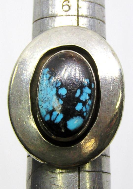 RING WITH TURQUOISE CENTER STONE-RING SIZE 8-TOTAL 10 DWT