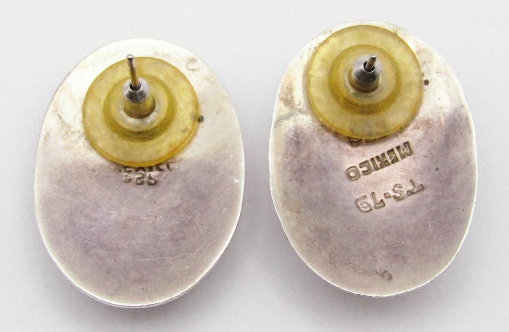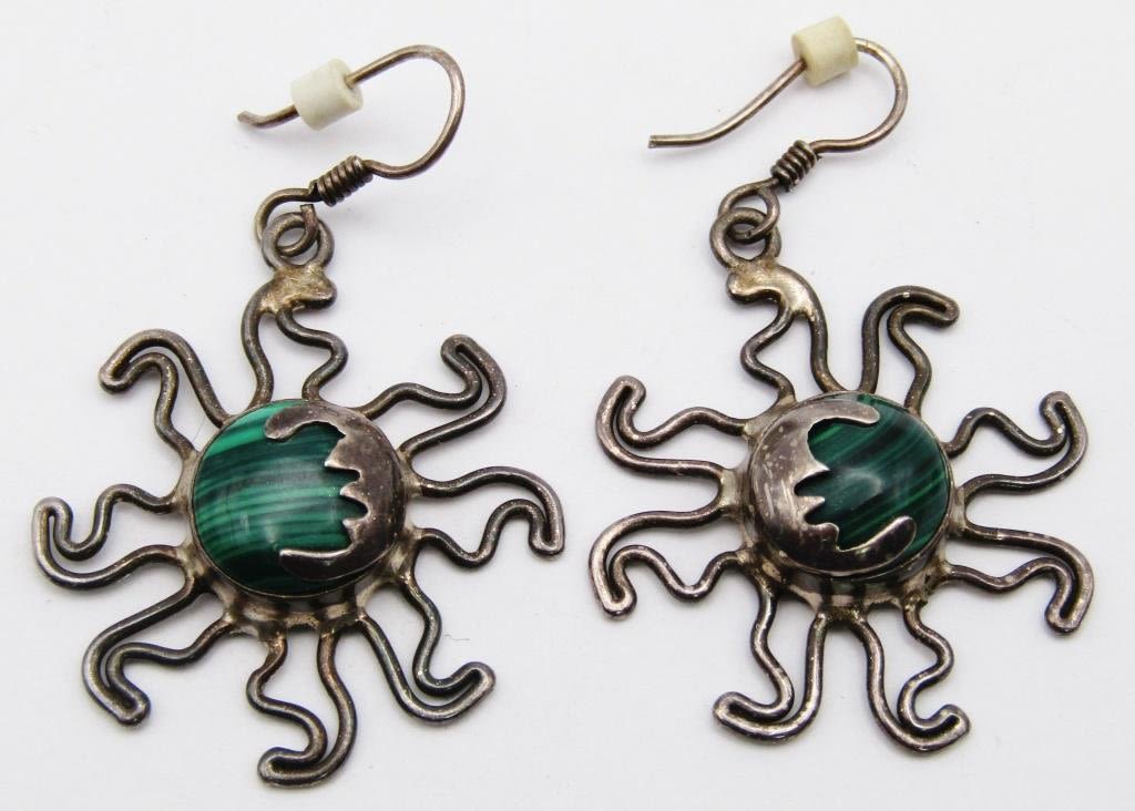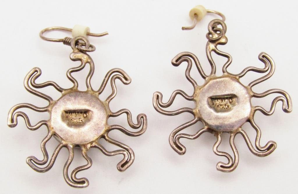 EARRINGS: (1)MOON DESGIN (1)WITH LAPIS INLAY ENGRAVED DESIGN AROUND THE BORDER-TOTAL 12 DWT