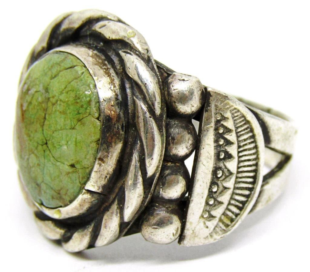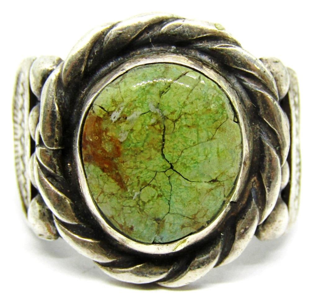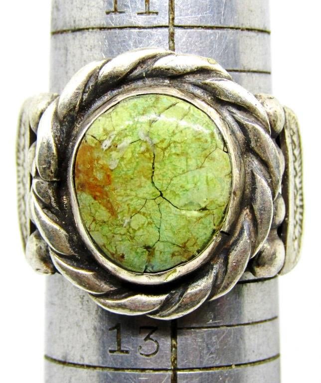 GREEN TURQUOISE CENTER STONE-RING SIZE 12-TOTAL 10 DWT