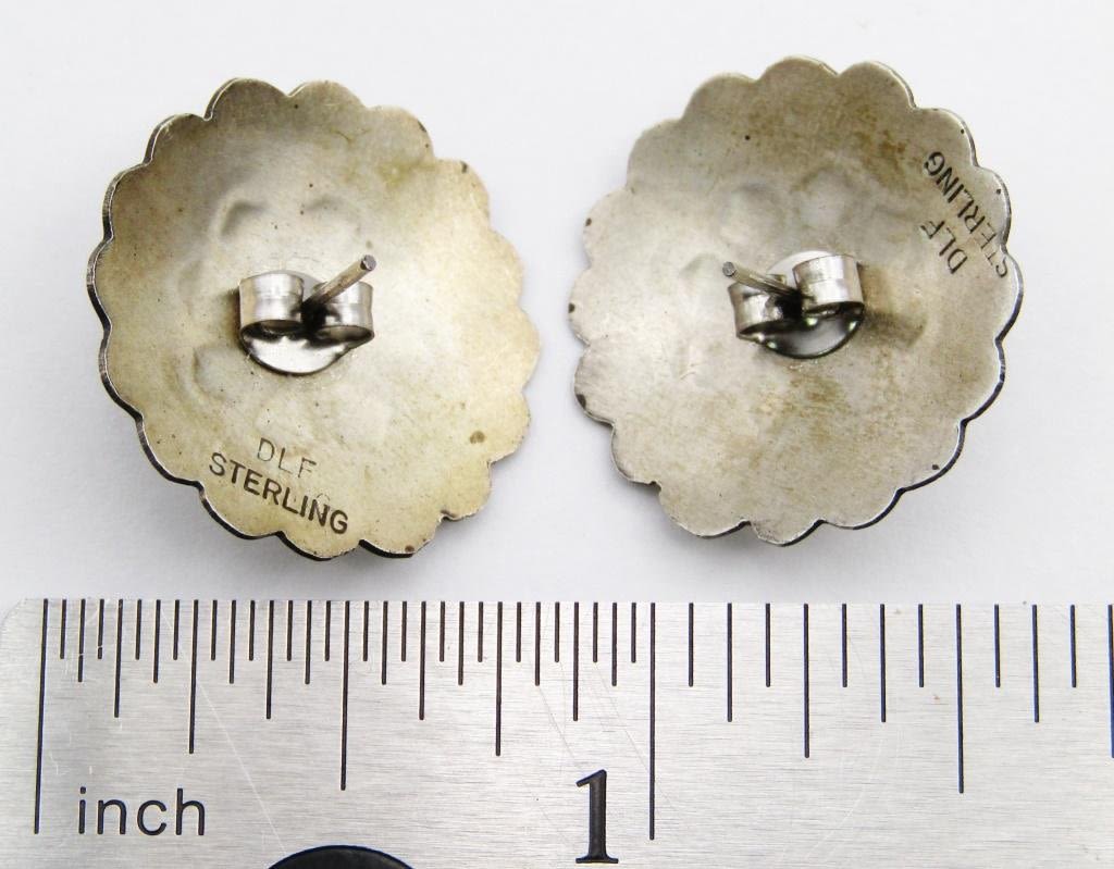 PIERCED EARRINGS (1)ZUNI (1)"DLF" WITH BLACK ONYX CENTER-TOTAL 10 DWT