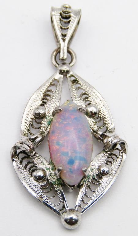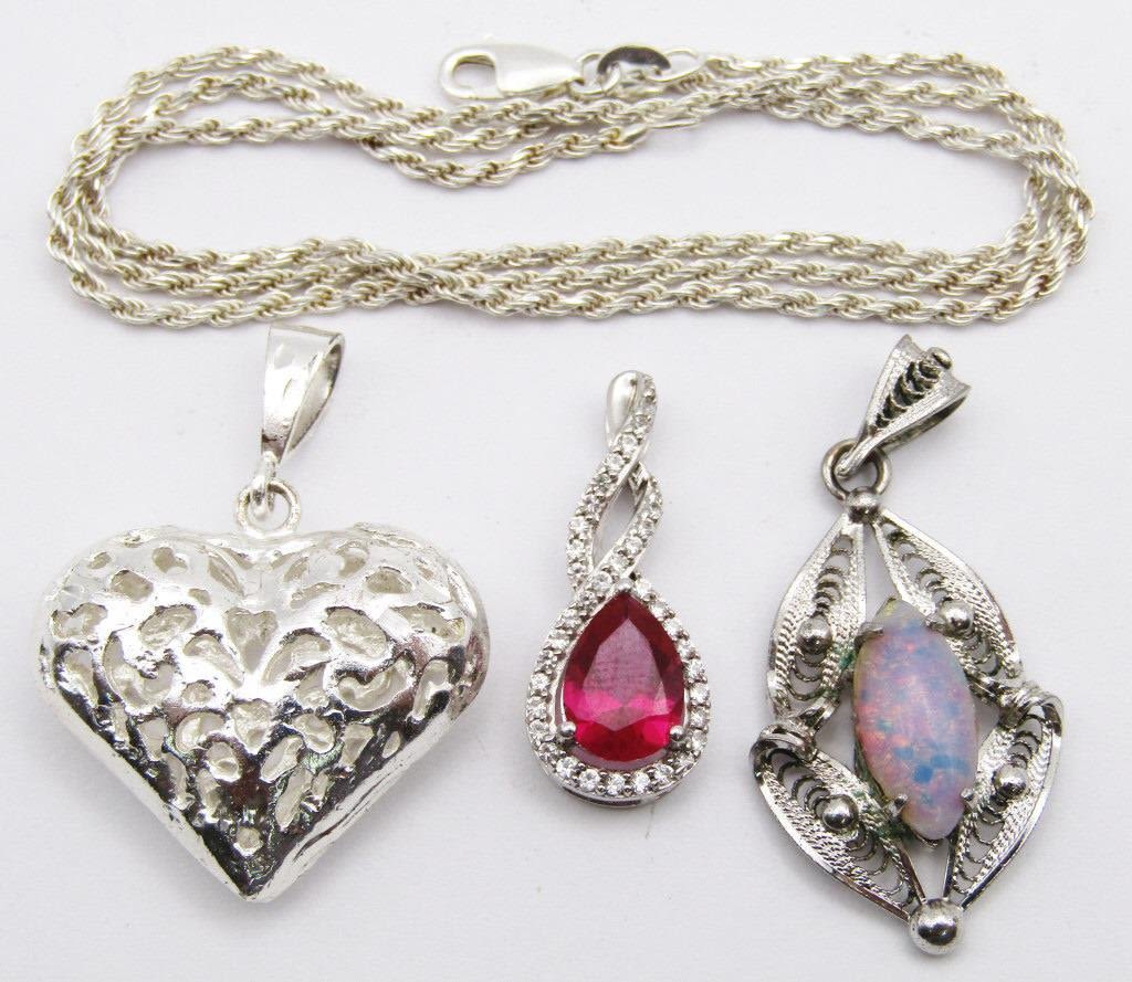 HEART (1)OPALESCANT (1)MAGENTA-COMES WITH THIN 18 INCH CHAIN-TOTAL 11 DWT