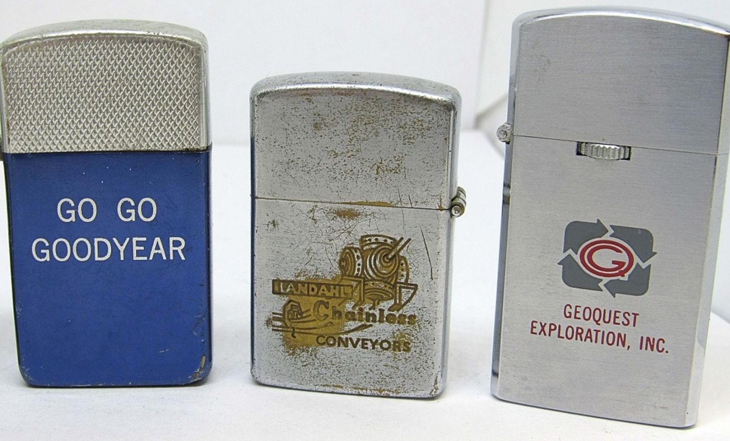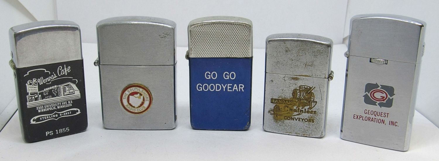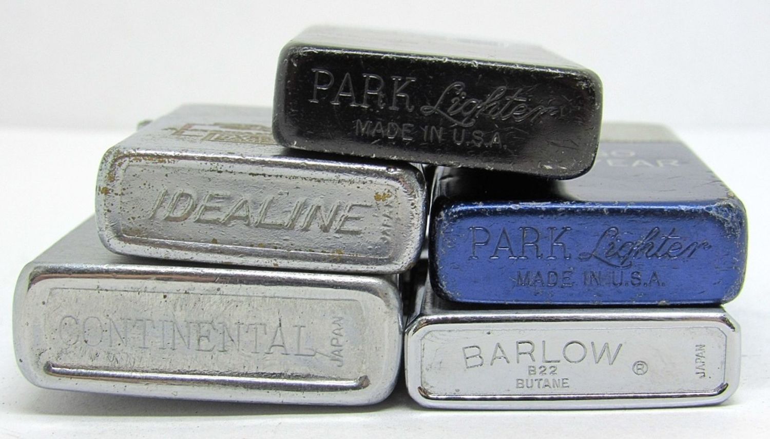 TWO PARK LIGHTERS, ONE CONTINENTAL, ONE BARLOW AND ONE IDEALINE. ALL HAVE DIFFERENT ADVERTISEMENTS, AND ALL UNTESTED AND PRE-OWNED.
