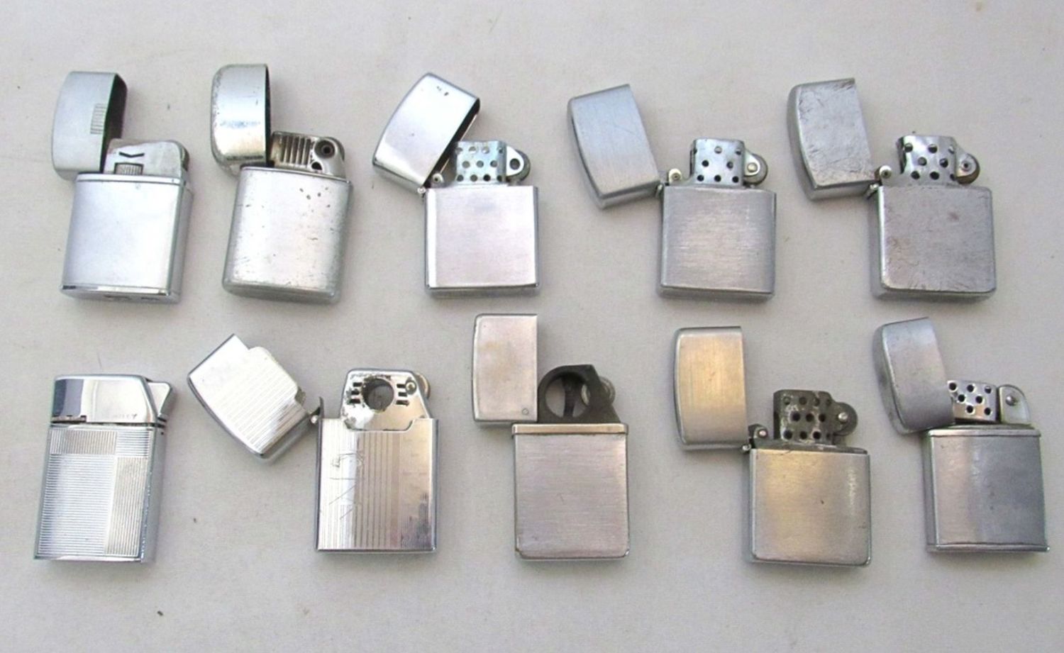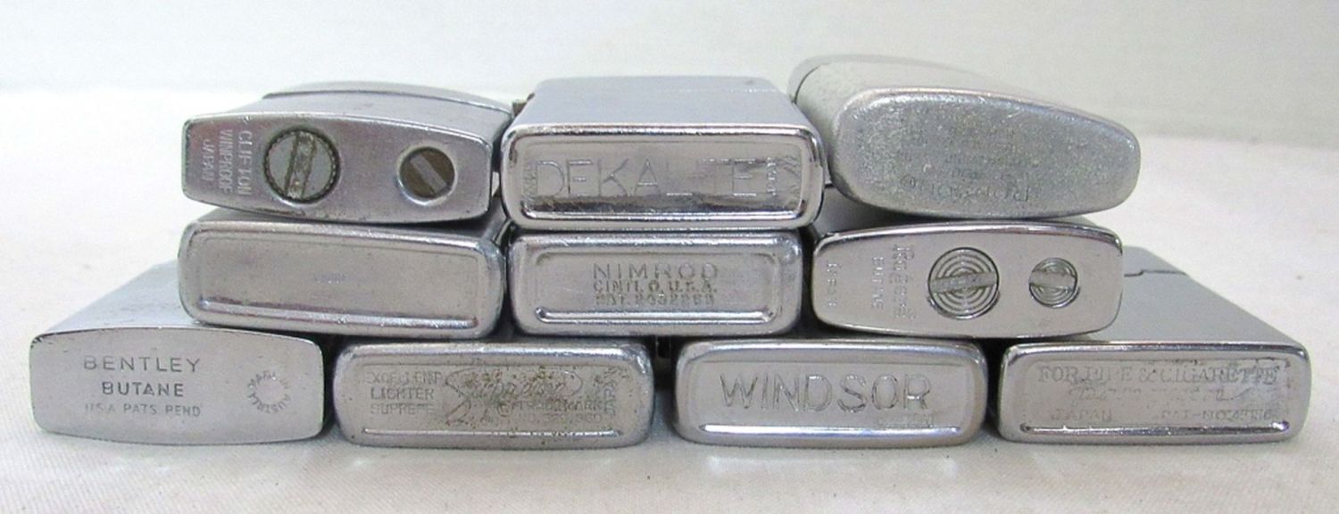 10 SILVER LIGHTERS, MUTLIPLE BRANDS IN LOT! INCLUDES SUPREME, WINDSOR, CLIFTON, DEKALITE, AND MORE. ALL UNTESTED