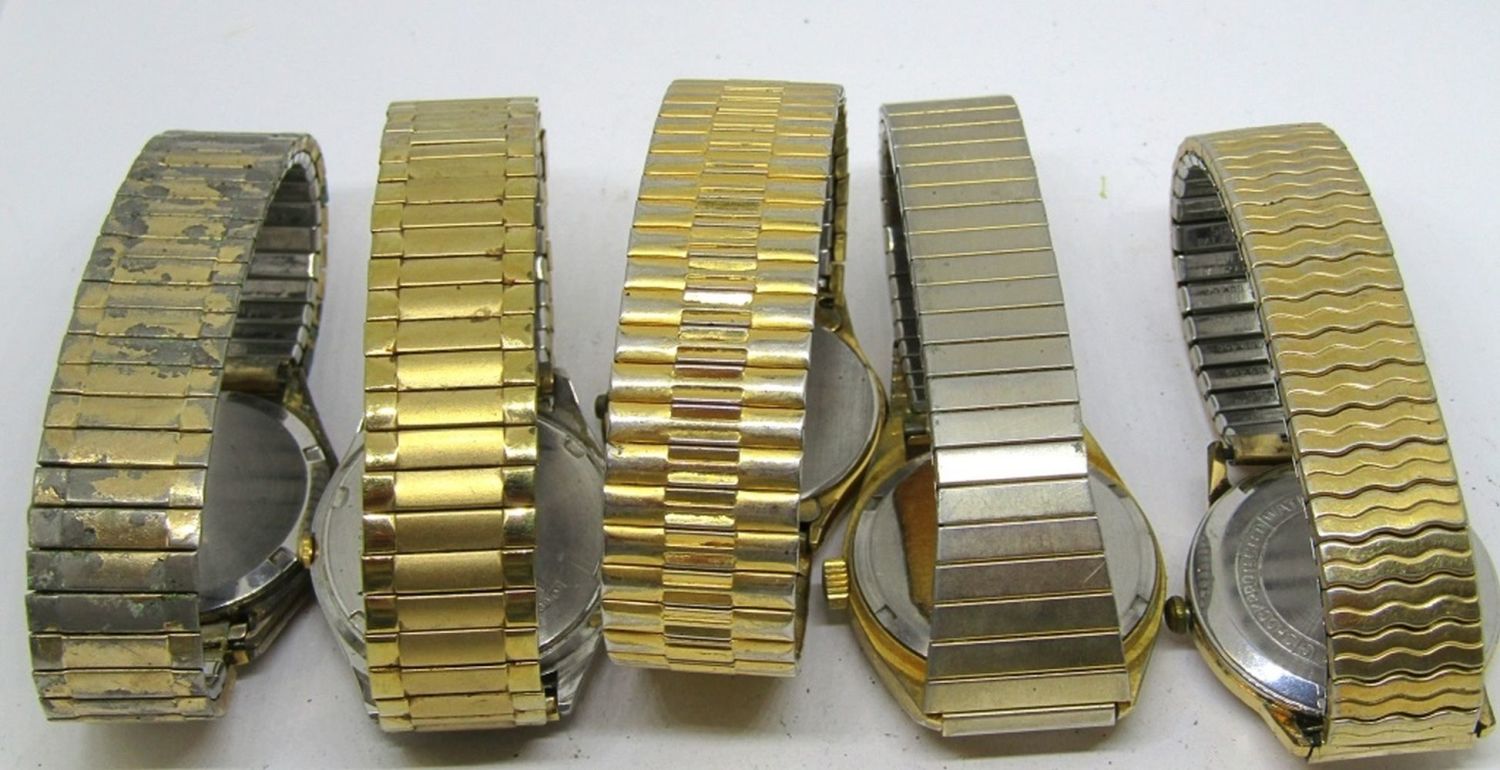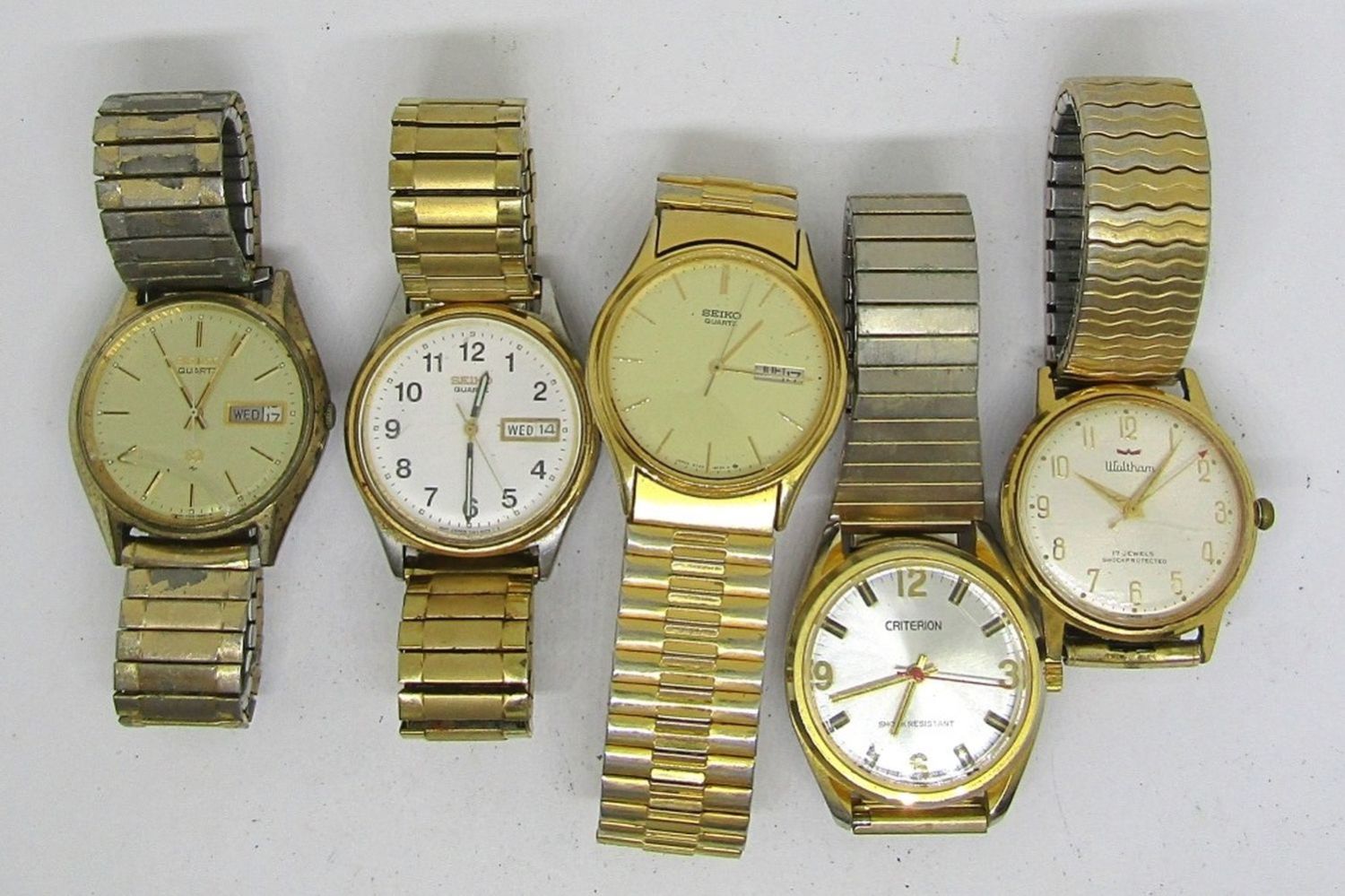 WITH STRETCHY BANDS: SEKO DAY DATE-CRITERION SHOCK RESISTANT-SEIKO QUARTZ DAY DATE-WALTHAM 17 JEWELS-ALL WATCHES UNTESTED/PARTS/REPAIR